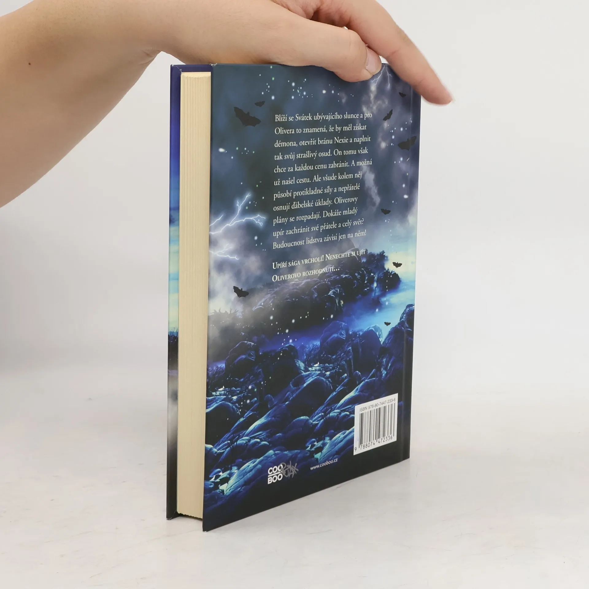 Blíží se svátek ubývajícího slunce a pro Olivera to znamená, že by měl získat démona, otevřít bránu Nexie a naplnit tak svůj strašlivý osud. On tomu však za každou cenu chce zabránit. A možná že už našel cestu. Ale všude kolem něj působí protikladné síly a nepřátelé osnují ďábelské úklady. Oliverovy plány se rozpadají. Dokáže mladý upír zachránit své přátele a zachránit svět? Budoucnost celého lidstva závisí jen na něm! Upíří sága vrcholí! Nenechte si to ujít Oliverovo rozhodnutí…