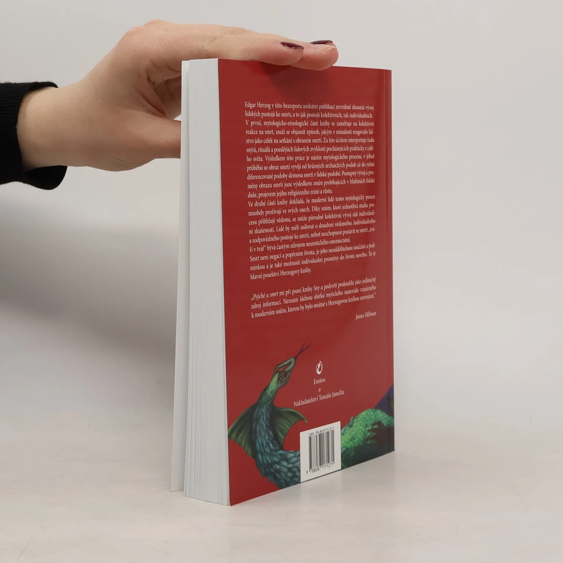 V této pozoruhodné studii, sestávající ze dvou částí, poprvé prezentované formou přednášek na Institutu C. G. Junga v Zürichu, Edgar Herzog vybírá z mýtů, pohádkových příběhů a folkloru úděsné variace archaického Obrazu Smrti. Kniha Psýché a smrt je orientačně rozdělena do dvou částí. V první části je zpracováván etnologický a mytologický materiál, založený na zprávách a tradicích z celého světa. Tato část je co se týče smrti zaměřena zejména na psychologické reakce skupin, kmenů a národů, promítající se v obřadech, mytologických příbězích a lidových zvycích, jež v západní kultuře ještě stále přežívají. Autor názorně dokládá, že Smrt se původně odhalila ve zvířecí podobě: jako Vlk, Kůň, Pes, Had a Pták. V současnosti na sebe Smrt bere obdobné podoby, jež se dostávají do lidského vědomí především prostřednictvím snů. Ve druhé části Herzog zkoumá sny pacientů, dnešních mužů a žen podstupujících psychoterapii, a tyto sny komentuje výklady, jimiž jsou zmiňované osoby, scény i dramata ozřejmeny ve spojitosti se symbolickými obrazy a obřady Smrti z poměrně nedávné minulosti, v níž se odráží dávnověk. V této druhé části se Herzog pokouší objasnit jak tyto sny reflektují vývojové procesy i dozrávání novodobých jedinců, a to ve snech samotných i skrze ně. Každý terapeut i laik bude obohacen tímto osvětlením nejtemnějšího subjectu, věčné noci.