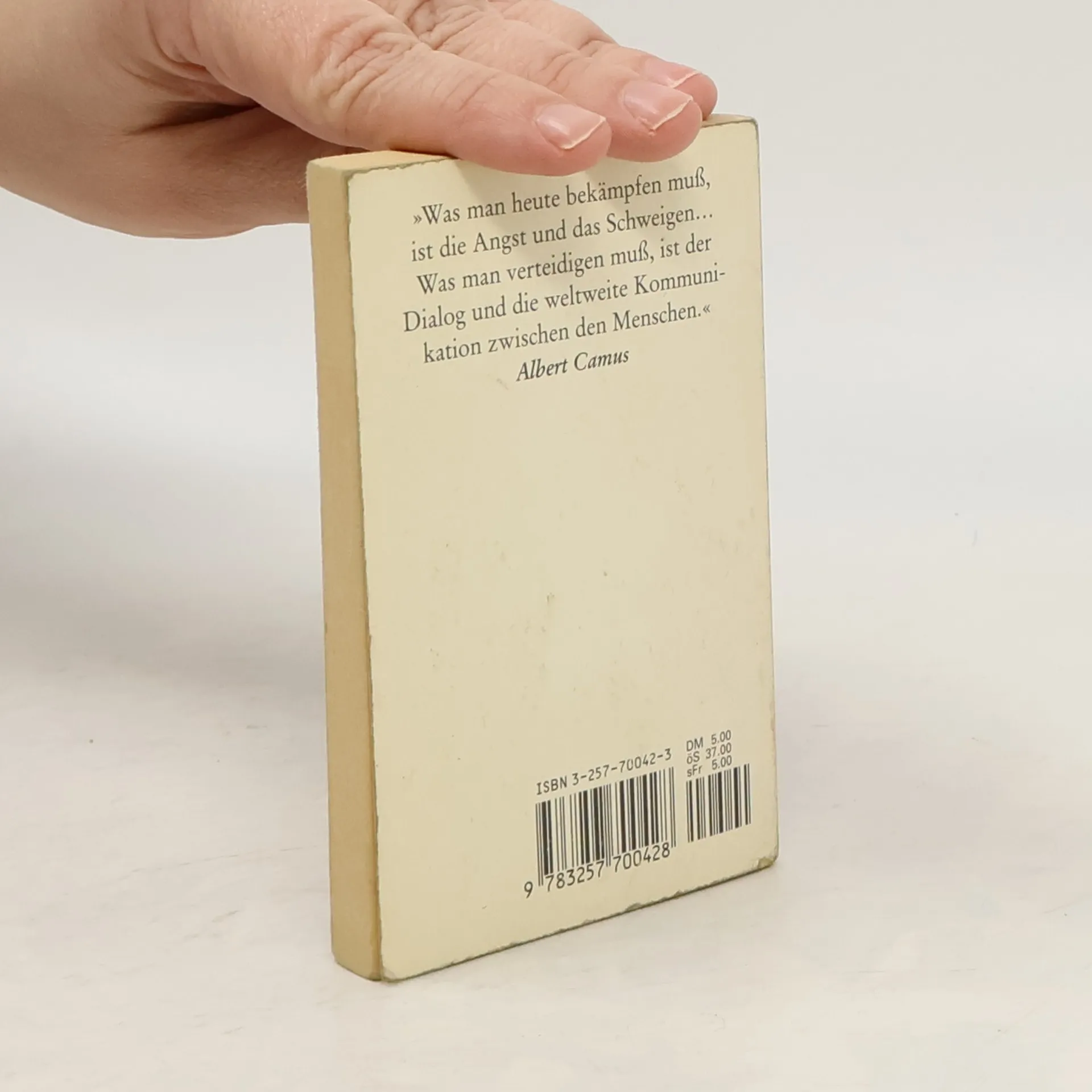 „Wir wissen heute, dass es keine Inseln mehr gibt, dass die Grenzen sinnlos sind. Wir wissen, dass wir in einer Welt der konstanten Beschleunigung je nachdem zur Mitschuld oder zur Solidarität gezwungen werden. Was wir in den 40er Jahren gelernt haben, ist, dass die Beschimpfung eines Studenten in Prag gleichzeitig den Arbeiter in Clichy traf, dass das irgendwo an den Ufern eines mitteleuropäischen Flusses vergossene Blut dazu führte, dass ein Bauer aus Texas das seinige auf dem Boden jener Ardennen verlor, die er erstmals sah. Es gab und gibt auf dieser Welt kein einziges gesondertes Leiden, keine einzige Folter mehr, die sich nicht auf unseren Alltag auswirkte. Wir wissen also alle ohne den Schatten eines Zweifels, dass die neue Ordnung, die wir suchen, keine ausschließlich nationale, nicht einmal eine kontinentale und vor allem keine westliche oder östliche Ordnung sein kann. Es muss eine universale Ordnung sein.“