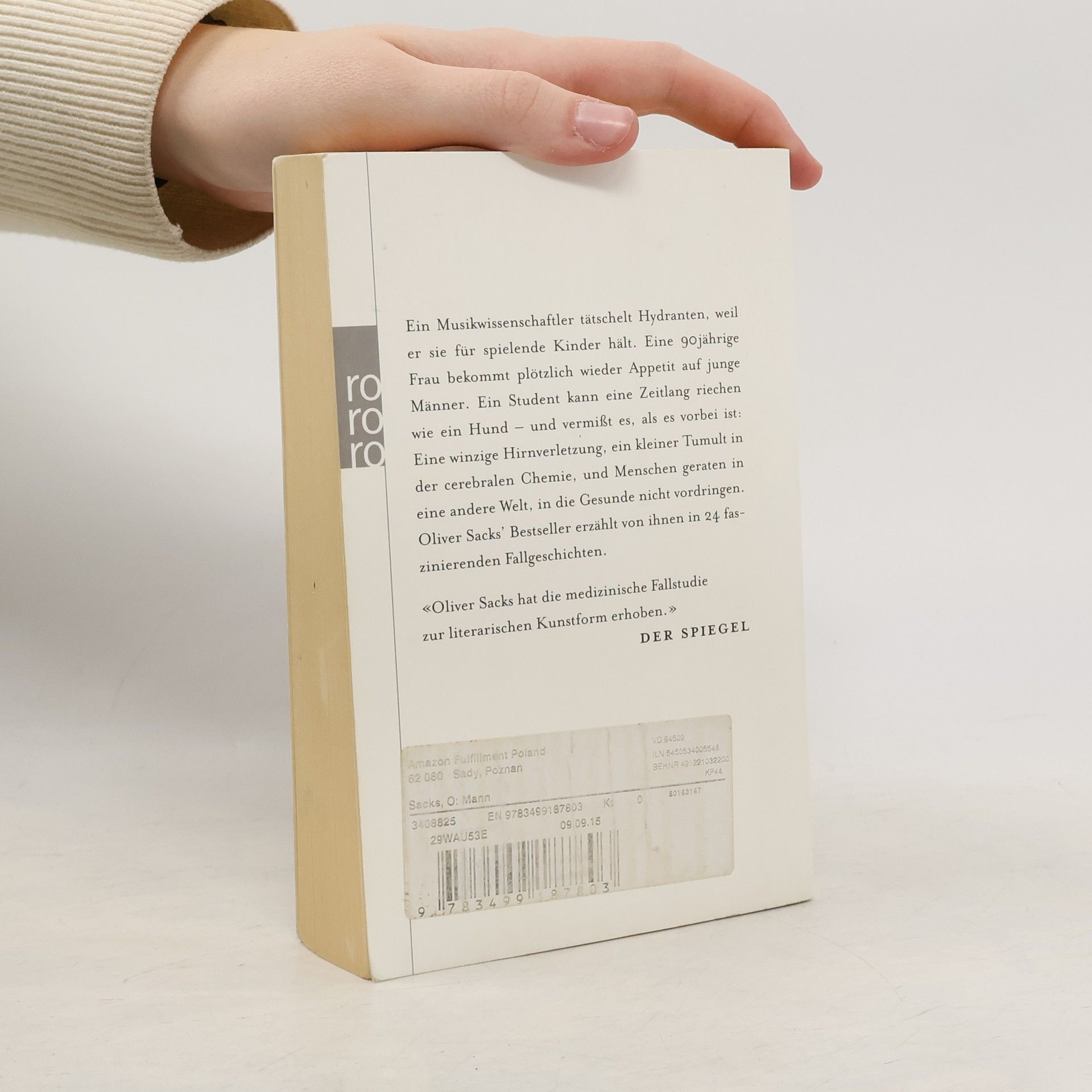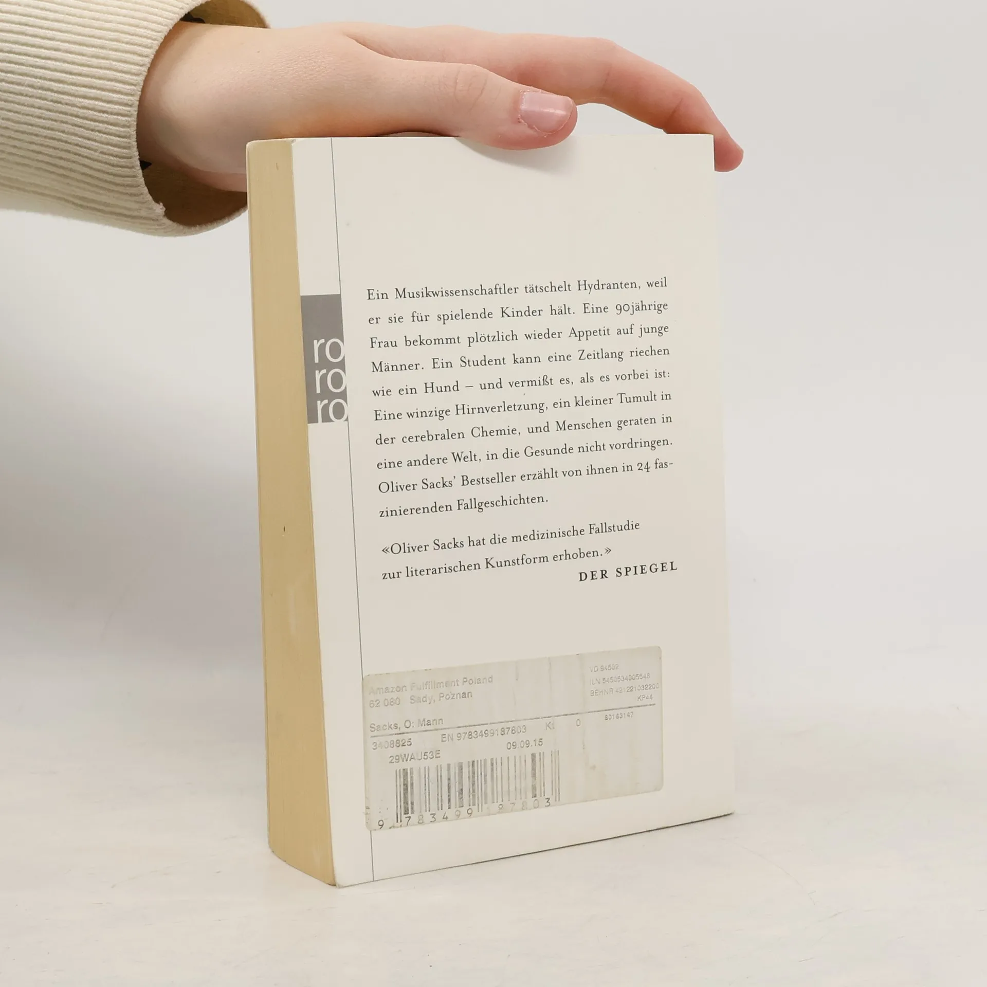 Ein Musikwissenschaftler tätschelt Hydranten, weil er sie für spielende Kinder hält. Eine 90jährige Frau bekommt plötzlich wieder Appetit auf junge Männer. Ein Student kann eine Zeitlang riechen wie ein Hund – und vermißt es, als es vorbei ist: Eine winzige Hirnverletzung, ein kleiner Tumult in der cerebralen Chemie, und Menschen geraten in eine andere Welt, in die Gesunde nicht vordringen. Oliver Sacks’ Bestseller erzählt von ihnen in 24 faszinierenden Fallgeschichten. «Oliver Sacks hat die medizinische Fallstudie zur literarischen Kunstform erhoben.» DER SPIEGEL