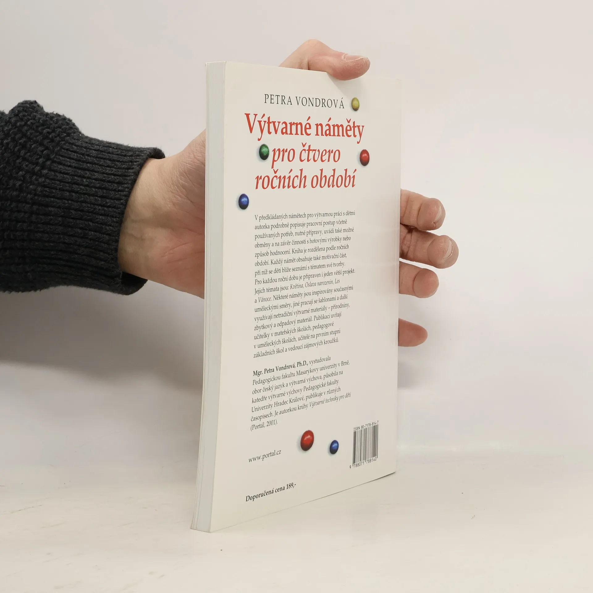 Náměty pro výtvarnou práci s dětmi, včetně motivační části v podobě hry, literární ukázky, písničky apod. Kniha je rozdělena podle ročních období, v každé části navrhuje práce pro jednotlivce, pro dvojice i pro skupiny. Inspirace využívají i současné umělecké tendence, netradiční výtvarné materiály - přírodniny, zbytkový a odpadový materiál, práci se šablonami.