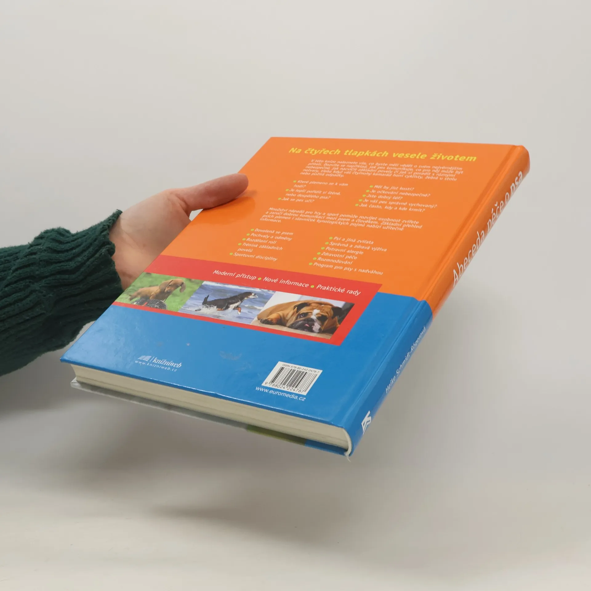 Na čtyřech tlapkách vesele životem V této knize naleznete vše, co byste měli vědět o svém nejvěrnějším příteli. Dozvíte se například, jak pes komunikuje, co pro něj může být nebezpečné, jak nacvičit základní povely či jak si poradit s různými nešvary, třeba když váš čtyřnohý kamarád honí cyklisty, žebrá u stolu nebo požírá odpadky. • Které plemeno se k vám hodí? • Je lepší pořídit si štěně, nebo dospělého psa? • Jak se pes učí? • Měl by jíst kosti? • Je očkování nebezpečné? • Jste dobrý šéf? • Je váš pes správně vychovaný? • Jak často, kdy a kde krmit? Množství nápadů pro hry a sport pomůže rozvíjet osobnost zvířete a zaručí dobrou komunikaci mezi psem a člověkem. Základní přehled psích plemen i slovníček kynologických pojmů nabízí užitečné informace. • Dovolená se psem • Pochvaly a odměny • Rozdělení rolí • Trénink základních povelů • Sportovní disciplíny • Psi a jiná zvířata • Správná a zdravá výživa • Potravní alergie • Zdravotní péče • Rozmnožování • Program pro psy s nadváhou Moderní přístup • Nové informace • Praktické rady