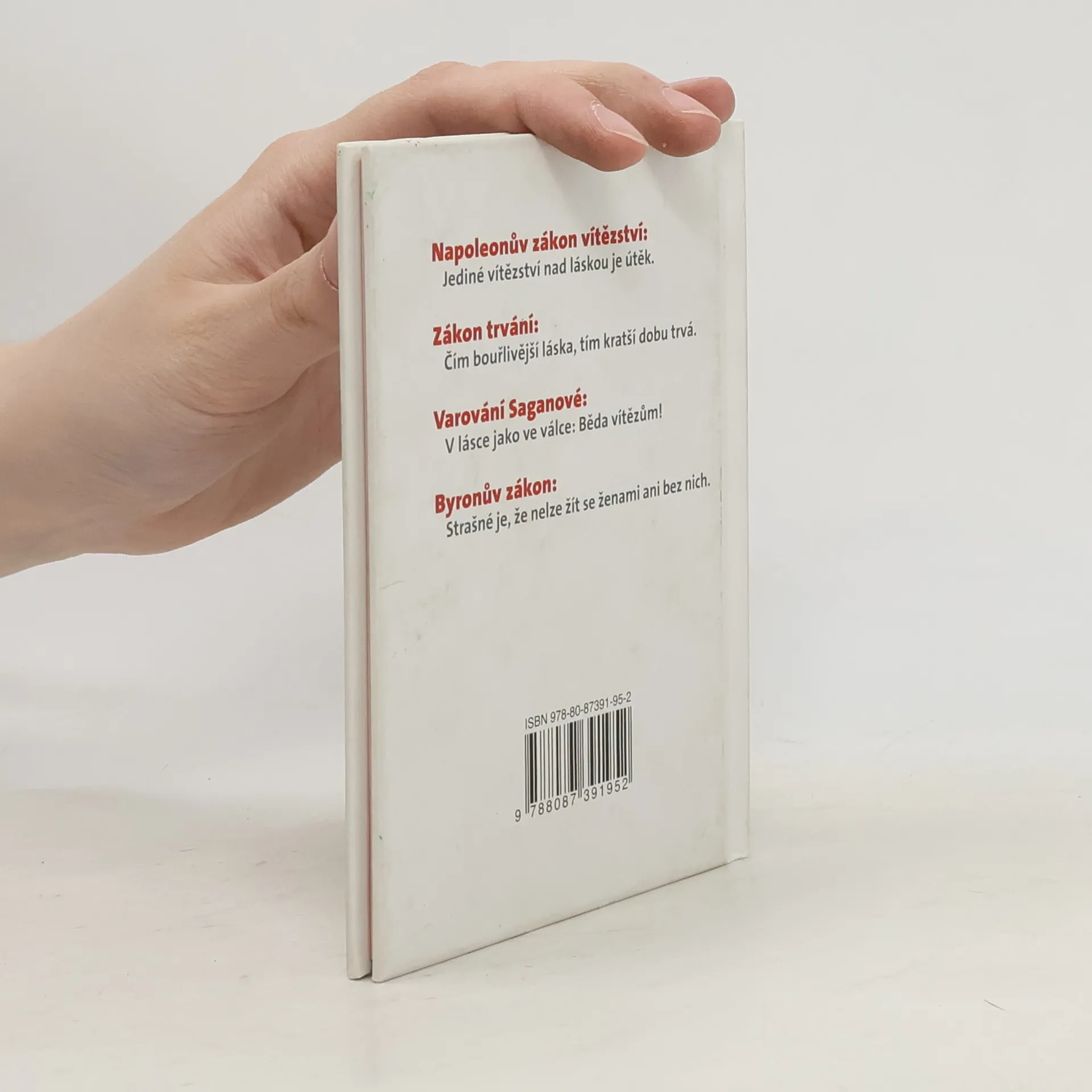 Soubor Murphyho zákony pro zamilované. "Napoleonův zákon vítězství: Jediné vítězství nad láskou je útěk. Zákon trvání: Čím bouřlivější láska, tím kratší dobu trvá. Varování Saganové: V lásce jako ve válce - Běda Vítězům! Byronův zákon: Strašné je, že nelze žít se ženami ani bez nich."