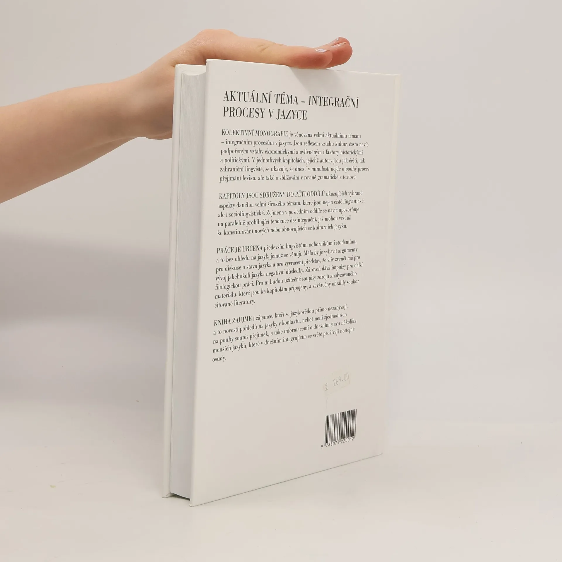 Kapitoly jsou sdruženy do pěti oddílů ukazujících vybrané aspekty daného, velmi širokého tématu, které jsou nejen čistě lingvistické, ale i sociolingvistické. Zejména v posledním oddíle se navíc upozorňuje na paralelně probíhající tendence desintegrační, jež mohou vést až ke konstituování nových nebo obnovujících se kulturních jazyků. V jednotlivých kapitolách se ukazuje, že dnes i v minulosti nejde o pouhý proces přejímání lexika, ale také o sbližování v rovině gramatické a textové.
