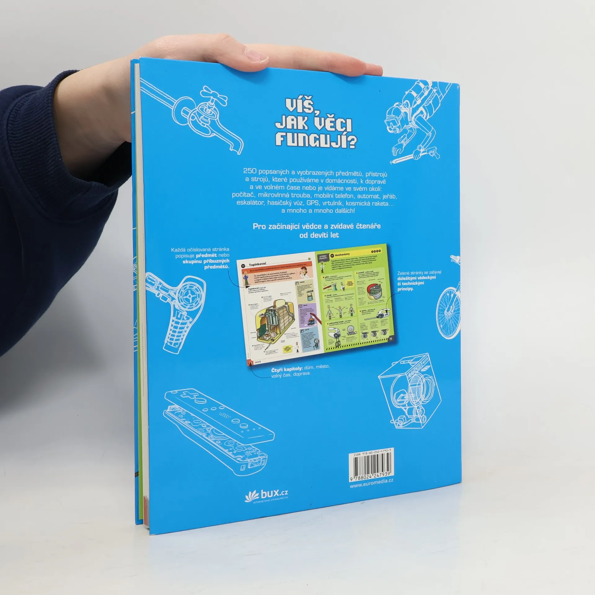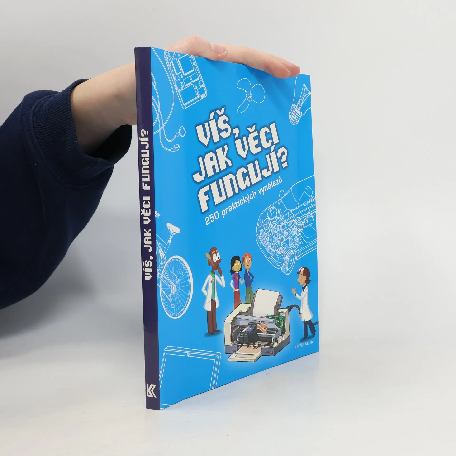 Podtitul: 250 praktických vynálezů Pro začínající vědce a všechny zvídavé čtenáře od devíti let tato kniha popisuje a vyobrazuje 250 předmětů, přístrojů a strojů, které používáme v domácnosti, k dopravě a ve volném čase nebo je vídáme ve svém okolí: počítač, mikrovlnnou troubu, mobilní telefon, platební kartu, prodejní automat, jeřáb, eskalátor, hasičský vůz, GPS, vrtulník, kosmickou raketu… a mnoho a mnoho dalších! Druhé, upravené a doplněné vydání.