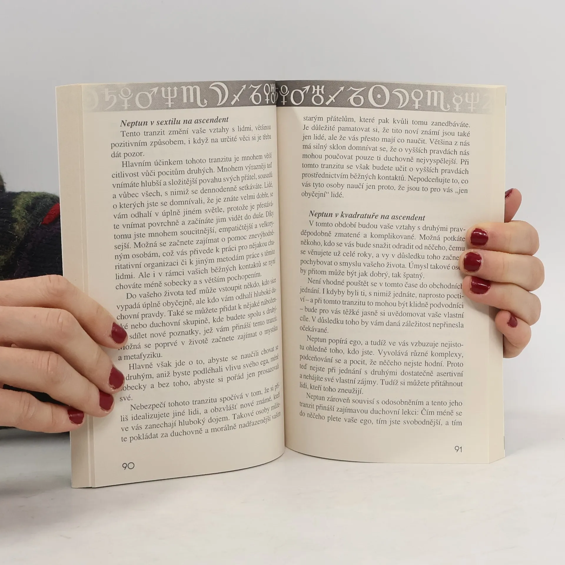 Nejlepší existující výklad životních období a přirozených vývojových cyklů podle toho, jaké je aktuální postavení planet v horoskopu jedince. Neptun – představitel spirituality, uměleckého cítění, snů a ideálů, ale i zrádných iluzí; a Pluto – princip hluboké transformace, smrti a znovuzrození v základních aspektech (konjunkce, sextil, kvadratura, trigon a opozice) na všechny planety + na ascendent i MC a také jejich přechod dvanácti domy natálního horoskopu.