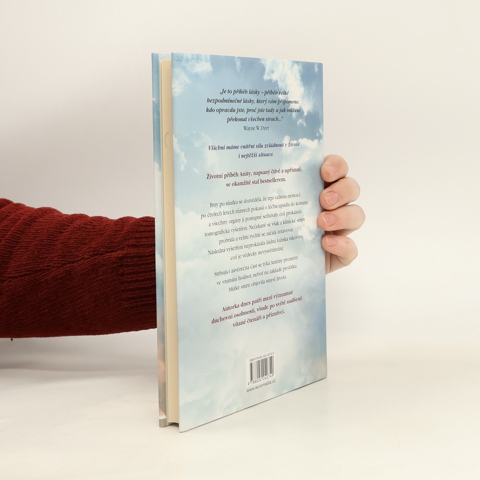 Životní příběh Anity, napsaný čtivě a upřímně, se okamžitě stal bestsellerem a autorka dnes patří mezi významné osobnosti, nadšeně vítané čtenáři po celém světě. Brzy po sňatku u ní diagnostikovali rakovinu, po čtyřech letech různých pokusů o léčbu upadla do kómatu a všechny orgány jí postupně selhávaly, což prokázala tomografická vyšetření. Nečekaně se však z klinické smrti probrala a velmi rychle se začala zotavovat. Následná vyšetření neprokázala žádná ložiska rakoviny, což je zcela neuvěřitelné a vědecky nevysvětlitelné. Strhující závěrečná část se týká autorčiny proměny ve vnímání hodnot, neboť na základě prožitku blízké smrti objevila smysl života. Anita Moorjani ve své inspirativní autobiografii líčí, jak jí po čtyřech letech boje se zákeřnou nemocí tělo vypovědělo službu. Dostala se do neobyčejného stavu zážitku blízké smrti a v něm si uvědomila svou vlastní hodnotu… i skutečnou příčinu své nemoci. Když nabyla vědomí, její stav se zlepšoval takovou rychlostí, že ji za několik týdnů bez jakýchkoli známek rakoviny propustili z nemocnice. Vyrůstala v tradiční hinduistické rodině uprostřed převážně čínské a britské společnosti a odmalička ji silně ovlivňovaly nejrůznější kulturní a náboženské zvyklosti.
