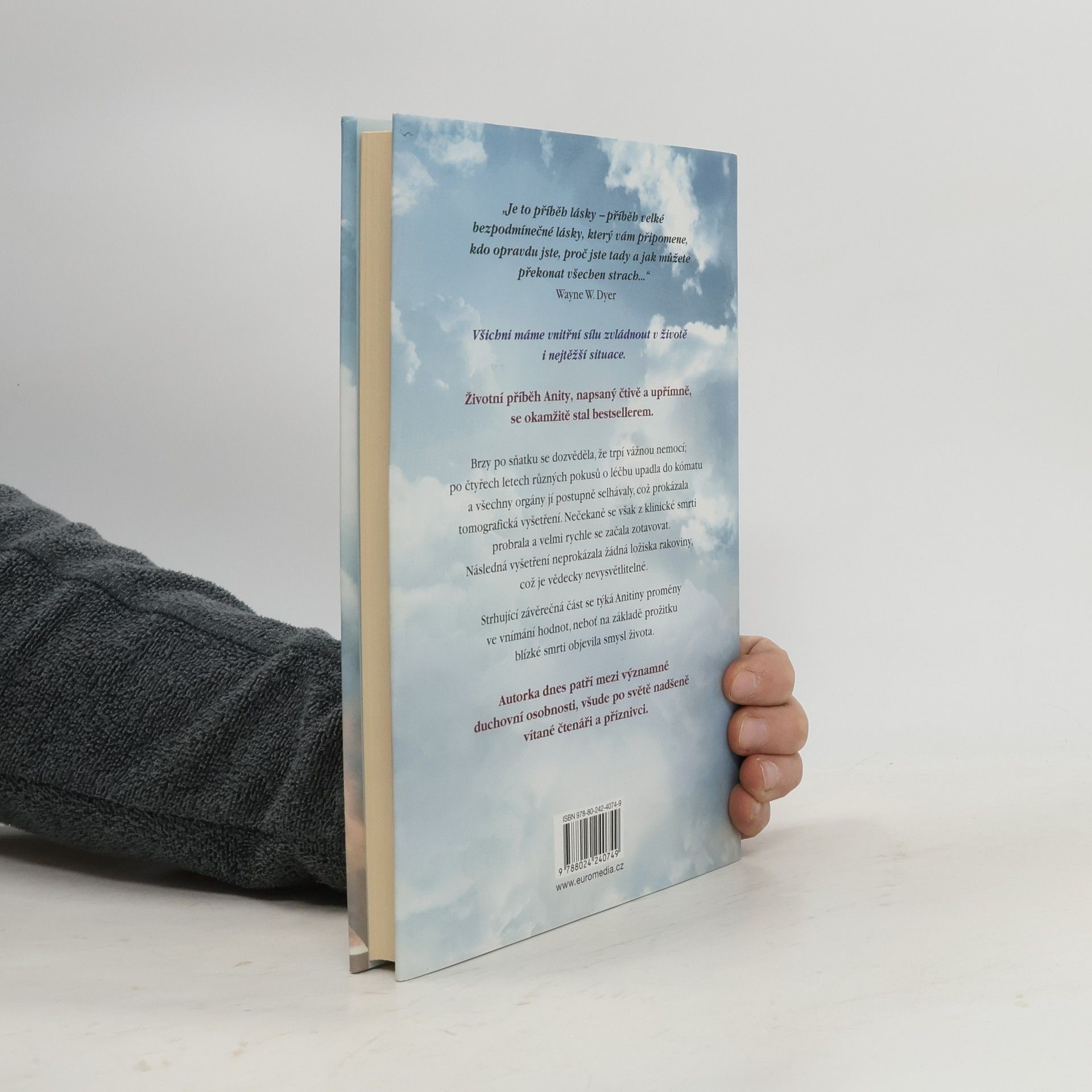 Životní příběh Anity, napsaný čtivě a upřímně, se okamžitě stal bestsellerem a autorka dnes patří mezi významné osobnosti, nadšeně vítané čtenáři po celém světě. Brzy po sňatku u ní diagnostikovali rakovinu, po čtyřech letech různých pokusů o léčbu upadla do kómatu a všechny orgány jí postupně selhávaly, což prokázala tomografická vyšetření. Nečekaně se však z klinické smrti probrala a velmi rychle se začala zotavovat. Následná vyšetření neprokázala žádná ložiska rakoviny, což je zcela neuvěřitelné a vědecky nevysvětlitelné. Strhující závěrečná část se týká autorčiny proměny ve vnímání hodnot, neboť na základě prožitku blízké smrti objevila smysl života. Anita Moorjani ve své inspirativní autobiografii líčí, jak jí po čtyřech letech boje se zákeřnou nemocí tělo vypovědělo službu. Dostala se do neobyčejného stavu zážitku blízké smrti a v něm si uvědomila svou vlastní hodnotu… i skutečnou příčinu své nemoci. Když nabyla vědomí, její stav se zlepšoval takovou rychlostí, že ji za několik týdnů bez jakýchkoli známek rakoviny propustili z nemocnice. Vyrůstala v tradiční hinduistické rodině uprostřed převážně čínské a britské společnosti a odmalička ji silně ovlivňovaly nejrůznější kulturní a náboženské zvyklosti.