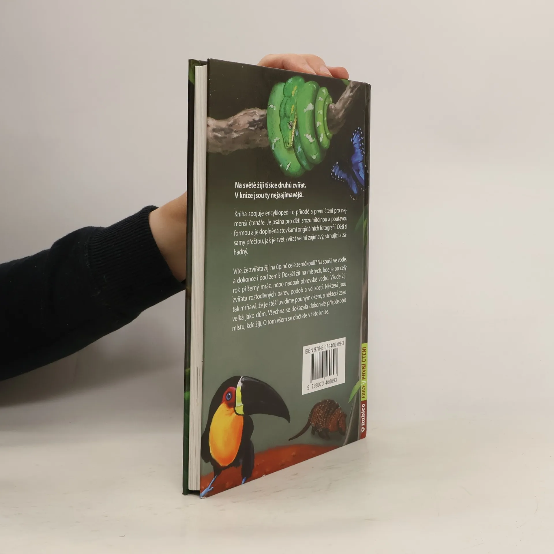 Víte, že zvířata žijí na úplně celé zeměkouli? Na souši, ve vodě, a dokonce i pod zemí? Dokáží žít na místech, kde je po celý rok příšerný mráz, nebo naopak obrovské vedro. Všude žijí zvířata roztodivných barev, podob a velikostí. Některá jsou tak mrňavá, že je stěží uvidíme pouhým okem, a některá zase velká jako dům. Všechna se dokázala dokonale přizpůsobit místu, kde žijí. O tom všem se dočtete v této knize. Kniha spojuje encyklopedii o přírodě a první čtení pro nejmenší čtenáře. Je psána pro děti srozumitelnou a poutavou formou a je doplněna stovkami originálních fotografií. Děti si samy přečtou, jak je svět zvířat velmi zajímavý, strhující a záhadný. Jednoduchý text je psán velkým písmem, slova nejsou rozdělena na dva řádky.