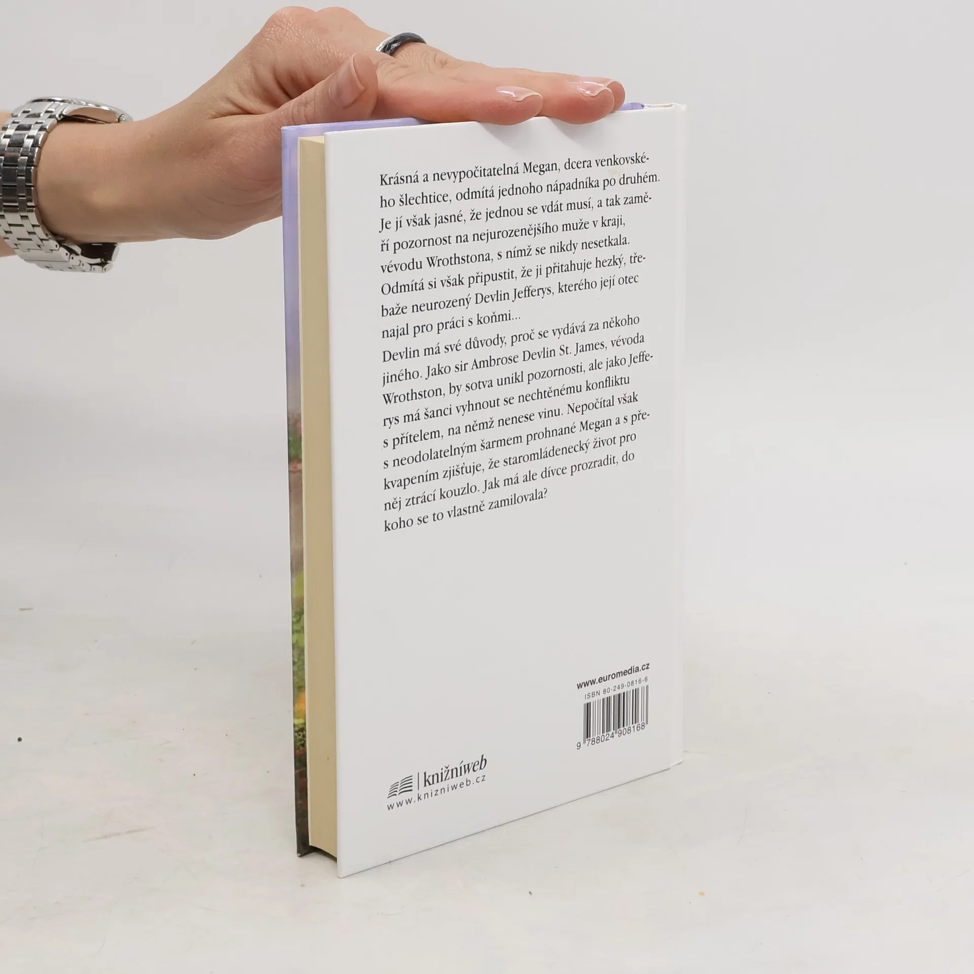 Krásná a nevypočitatelná Megan, dcera venkovského šlechtice, odmítá jednoho nápadníka po druhém. Je jí však jasné, že jednou se vdát musí, a tak zaměří pozornost na nejurozenějšího muže v kraji, vévodu Wrothstona, s nímž se nikdy nesetkala. Odmítá si však připustit, že ji přitahuje hezký, třebaže neurozený Devlin Jefferys, kterého její otec najal pro práci s koňmi... Devlin má své důvody, proč se vydává za někoho jiného. Jako sir Ambrose Devlin St. James, vévoda Wrothson, by sotva unikl pozornosti, ale jako Jefferys má šanci vyhnout se nechtěnému konfliktu s přítelem, na němž nenese vinu. Nepočítal však s neodolatelným šarmem prohnané Megan a s překvapením zjišťuje, že staromládenecký život pro něj ztrácí kouzlo. Jak má ale dívce prozradit, do koho se to vlastně zamilovala?