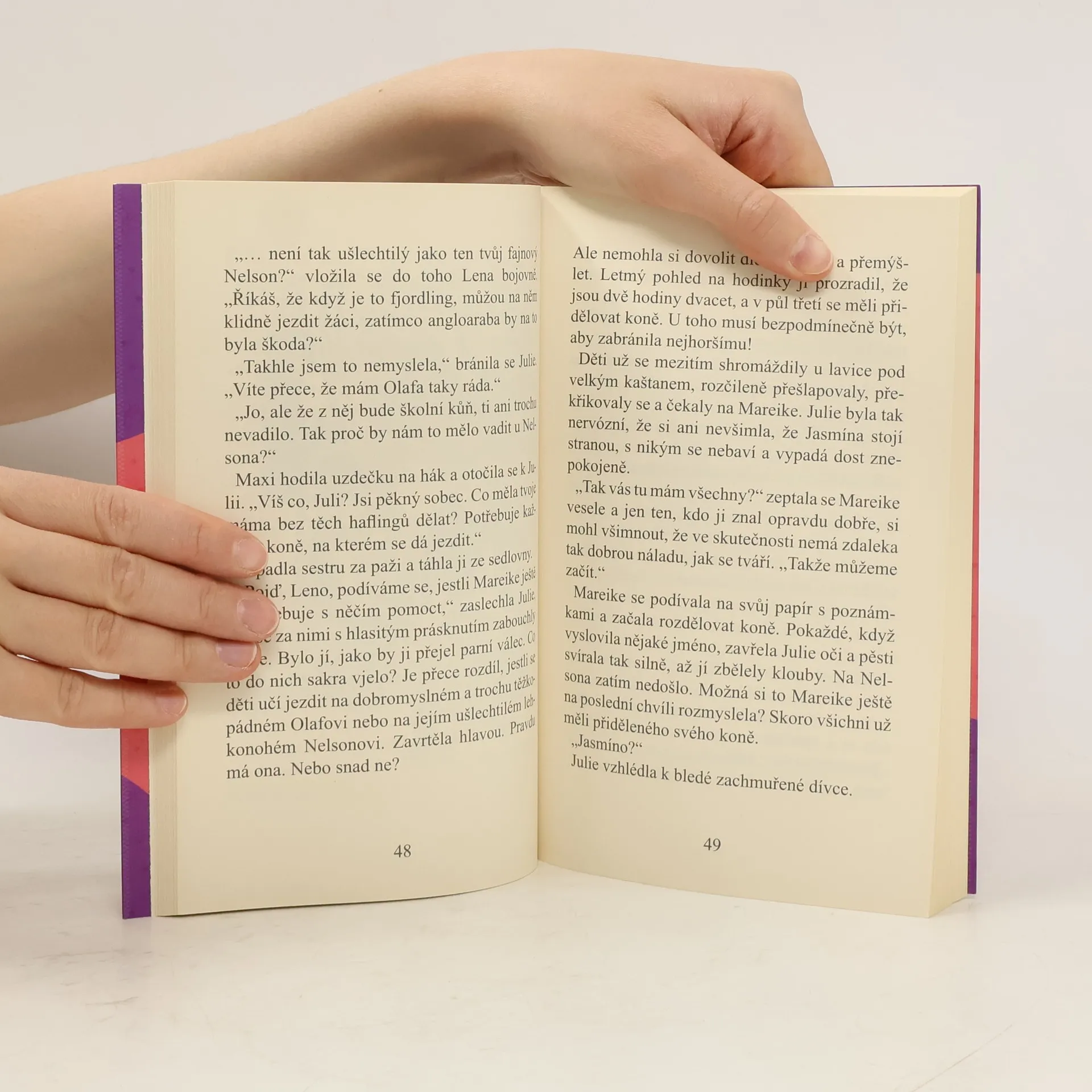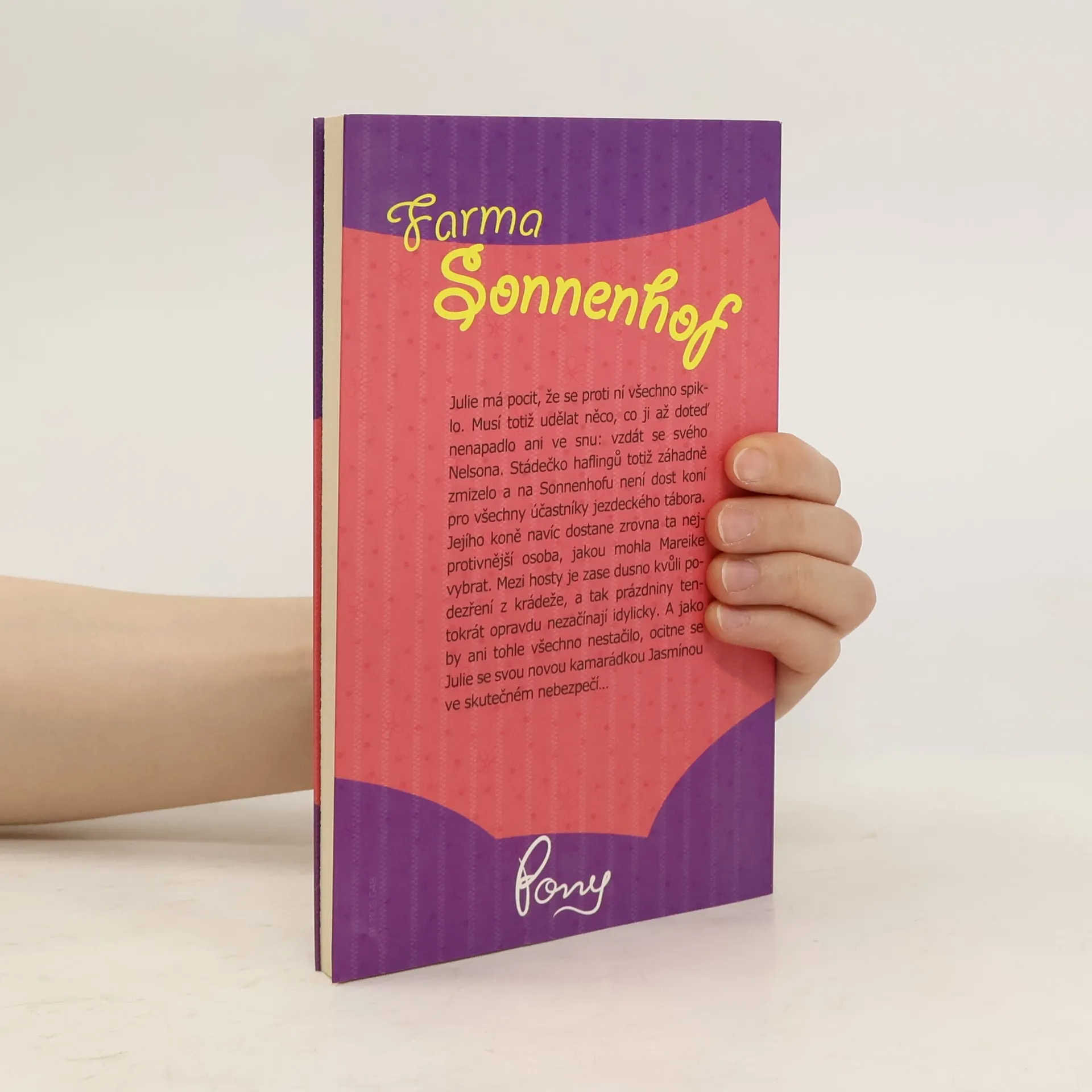Julie má pocit, že se proti ní všechno spiklo. Musí totiž udělat něco, co ji až doteď nenapadlo ani ve snu: vzdát se svého Nelsona. Stádečko haflingů totiž záhadně zmizelo a na Sonnenhofu není dost koní pro všechny účastníky jezdeckého tábora. Jejího koně navíc dostane zrovna ta nejprotivnější osoba, jakou mohla Mareike vybrat. Mezi hosty je zase dusno kvůli podezření z krádeže, a tak prázdniny tentokrát opravdu nezačínají idylicky. A jako by ani tohle všechno nestačilo, ocitne se Julie se svou novou kamarádkou Jasmínou ve skutečném nebezpečí…