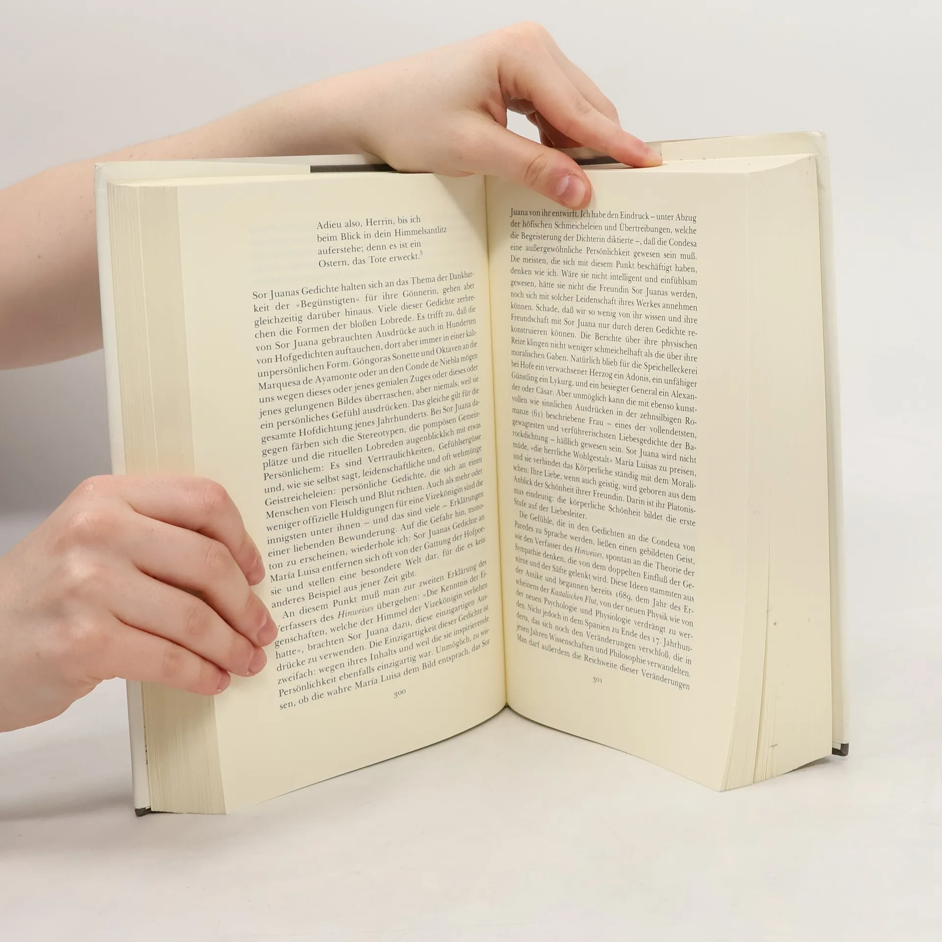 Octavio Paz schreibt hier über eine mexikanische Dichterin aus dem Neuspanien des 17. Jahrhunderts. Gegenstand seines großen biographischen Essays ist Sor Juana Inés de la Cruz, die erstaunlichste Gestalt der gesamten hispanoamerikanischen Literatur. Juana genießt als Schützling der Vizekönigin die Vergnügungen eines Lebens am Hof. Dann tritt sie in ein Kloster ein und verwandelt den vergitterten Sprechsaal in einen literarischen und intellektuellen Salon. Sie liest unersättlich und korrespondiert mit gleichrangigen Köpfen in Spanien und Südamerika. Ganz plötzlich jedoch händigt sie ihre gesamte weltliche Bibliothek aus, schwört allen literarischen Plänen ab und unterzeichnet eine Erklärung, in der sie auf weltliche Bildung und Gelehrsamkeit ein für allemal verzichtet. Paz zeichnet ein anschauliches Porträt des kulturellen Lebens in Neuspanien sowie der politischen und weltanschaulichen Kräfte, die in dieser Gesellschaft am Werke waren. Mit der kritischen Autorität eines der besten Kenner der abendländischen Lyrik hebt er die Besonderheiten ihres Werks hervor, ihre Einzigartigkeit als Lyrikerin.
