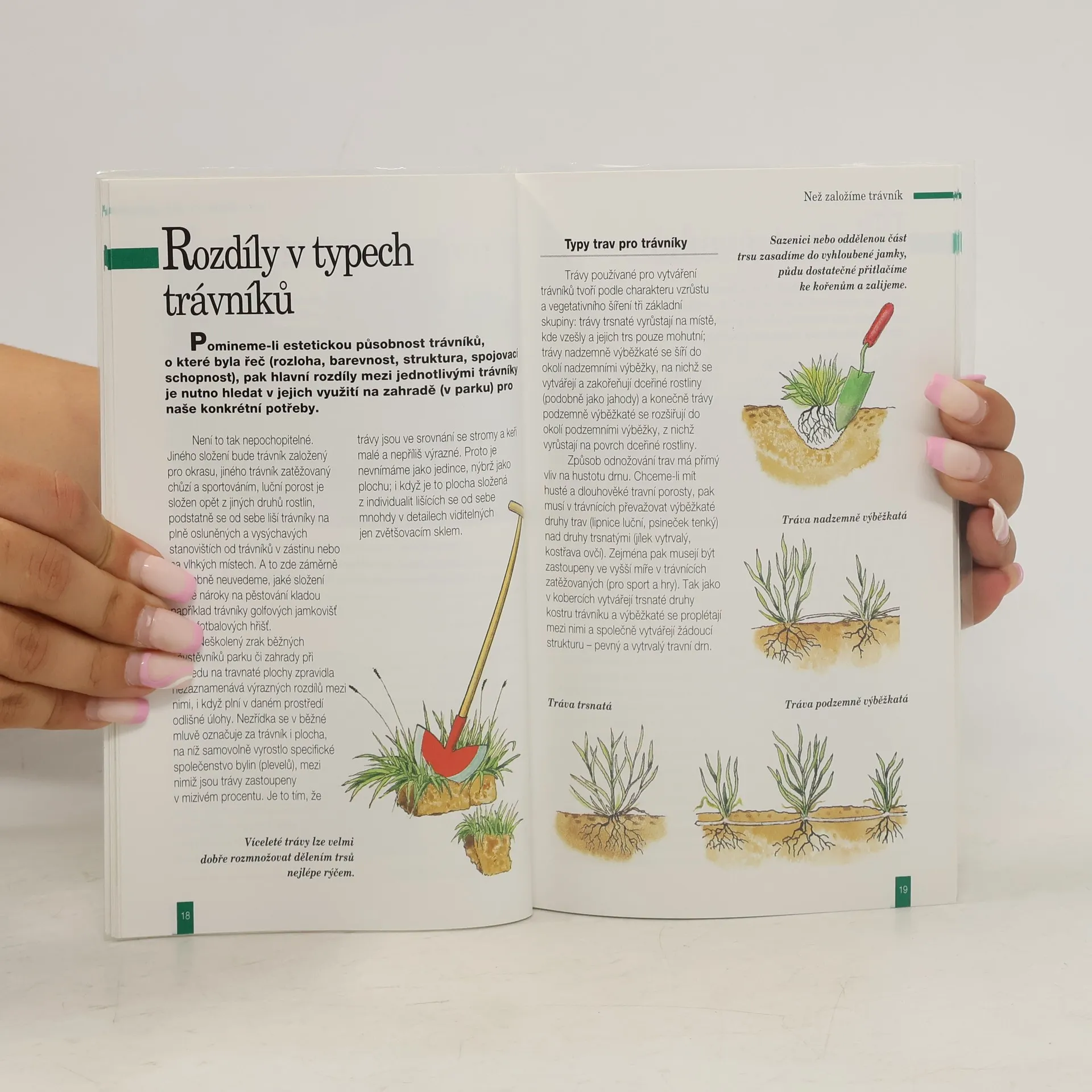 V první části knihy poskytují autoři detailní pokyny jak postupovat co nejefektivněji při zakládání a ošetřování různých typů trávníků. V druhé části pak poradí čtenáři s výběrem a pěstováním vhodných druhů jednoletých a vytrvalých druhů trav a s jejich využitím v zahradě nebo v mobilní zeleni.