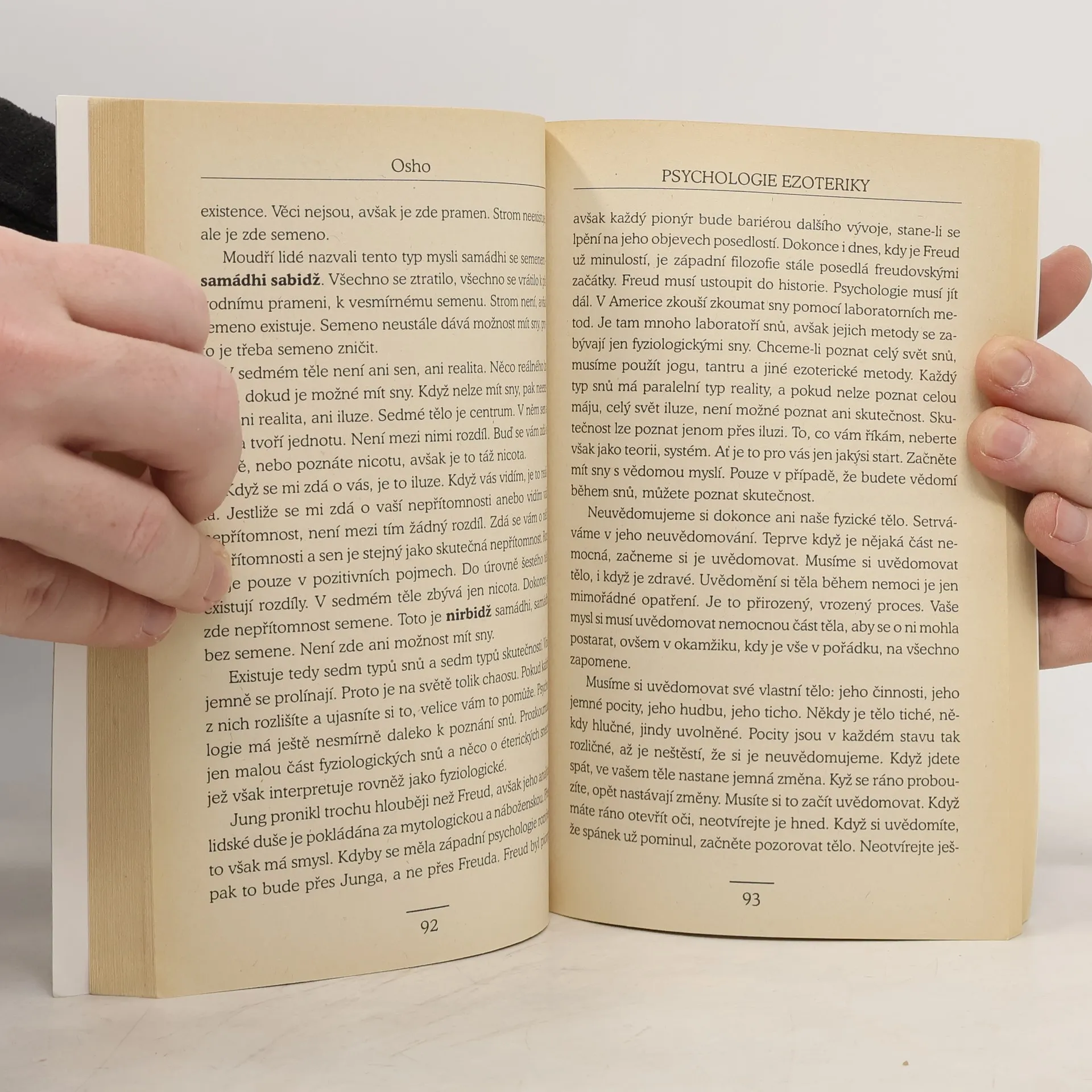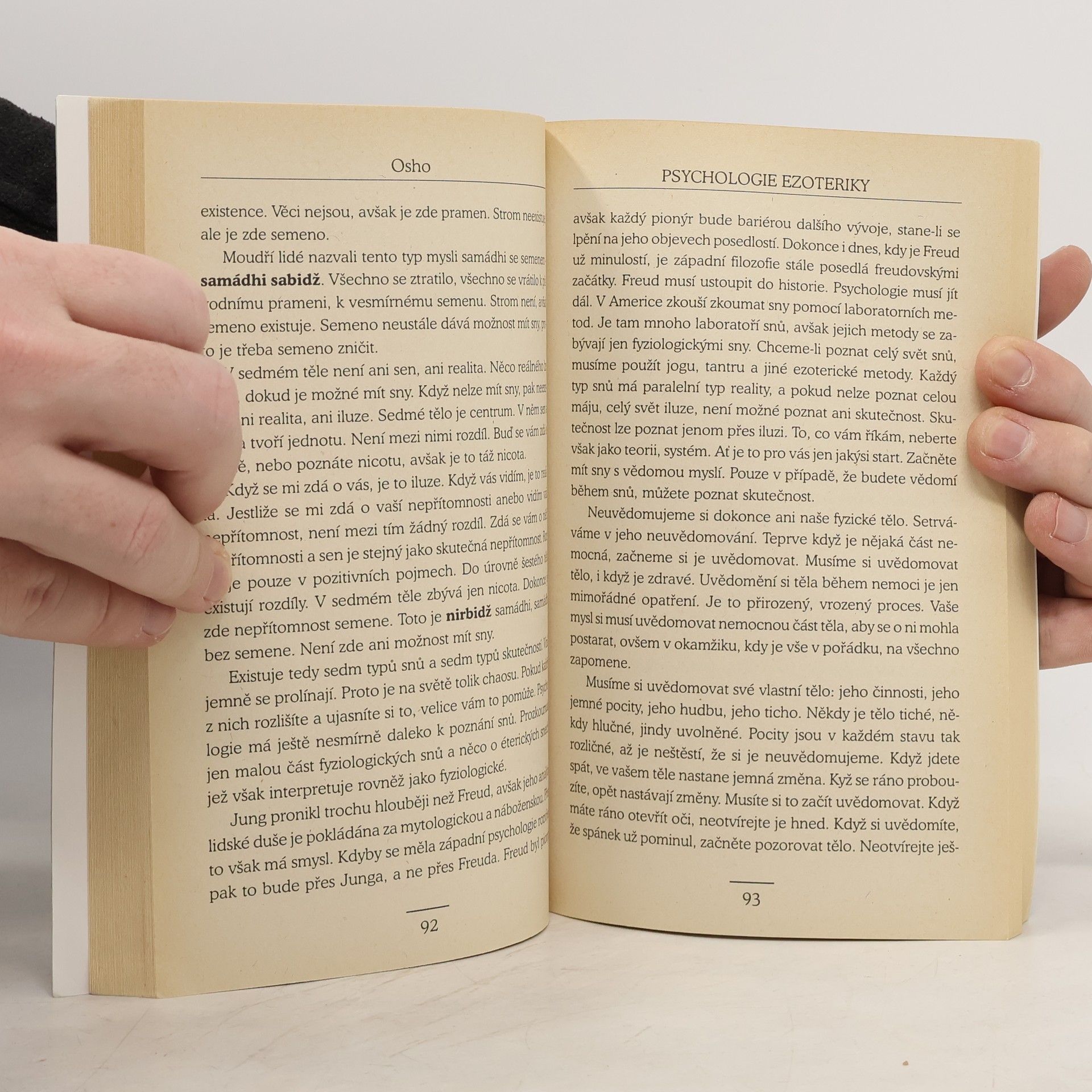 Psychologie ezoteriky začíná tam, kde končí západní psychologie. Neopomíjí Freudovy či Jungovy poznatky: je-li však Freudova psychologie psychologií patologie a pokud Maslowova psychologie představuje psychologii zdravého člověka, pak Oshova psychologie je psychologií osvícení a vyznačuje cestu k vyššímu lidskému vědomí. Aby mohlo toto buddhovství vykvést, je zapotřebí: "...přijmout člověka v jeho celistvosti. Nesmíme odmítat ani racionalitu, ani iracionalitu, ani intelekt, nelze odvrhnout emoce, ani vědeckost, ani náboženství. Člověk musí zůstat tekoucí, tekutý, schopný pohybovat se od jednoho pólu k druhému. Mysl musí být trénována logickým, racionálním způsobem, ale zároveň se musí procvičovat v iracionální meditaci. Je třeba trénovat rozum, ale současně i emoce. Musí být přítomna pochybnost, ale též víra... Ten, kdo odmítl iracionální, neroste, avšak nerozvíjí se ani ten člověk, jenž si odepřel racionální. Nemůžeme růst, pokud nerosteme totálně."