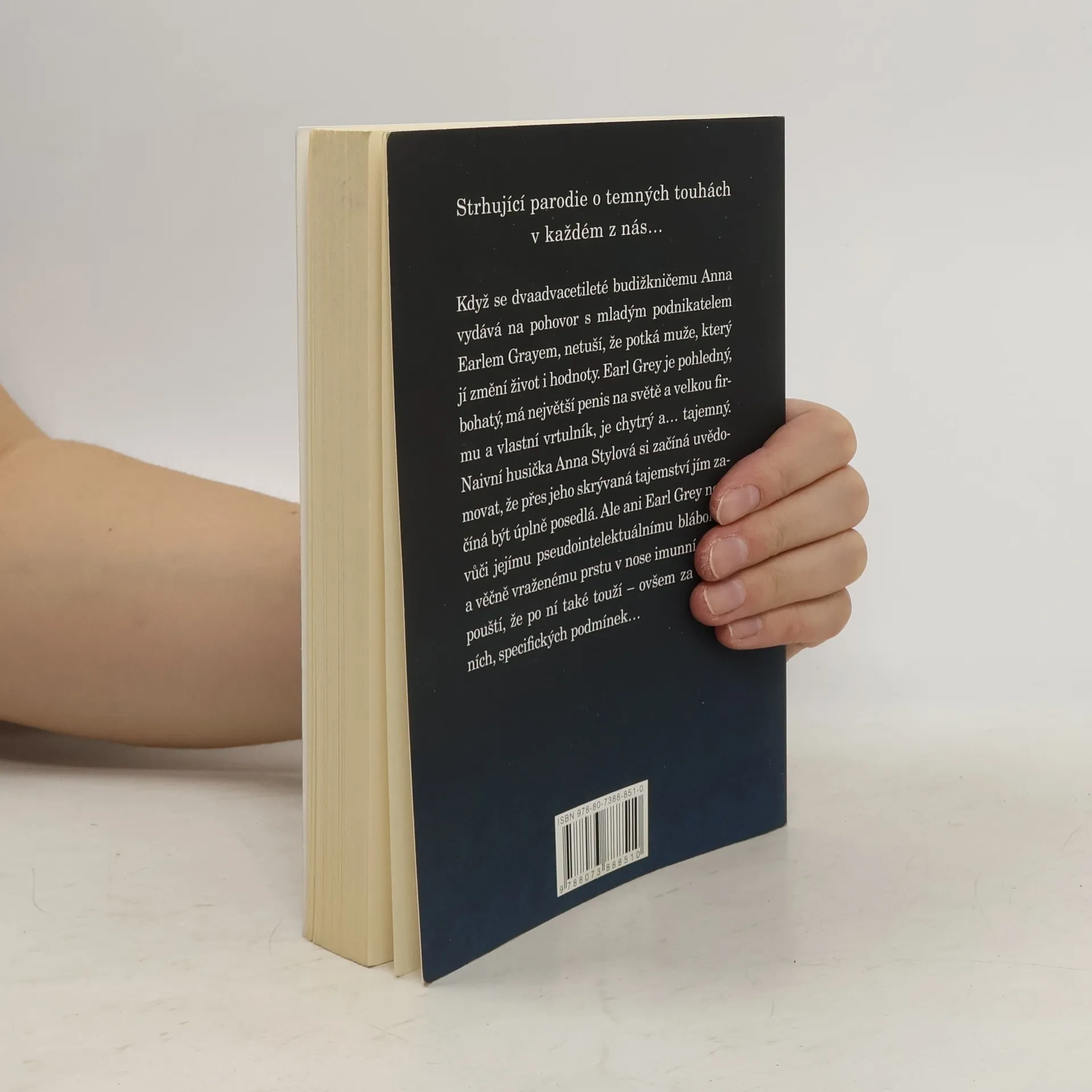 Nebezpečně vtipná parodie Strhující parodie o temných touhách v každém z nás… Když se dvaadvacetileté budižkničemu Anna vydává na pohovor s mladým podnikatelem Earlem Grayem, netuší, že potká muže, který jí změní život i hodnoty. Earl Grey je pohledný, bohatý, má největší penis na světě a velkou firmu a vlastní vrtulník, je chytrý a… tajemný. Naivní husička Anička si začíná uvědomovat, že přes jeho skrývaná tajemství jím začíná být úplně posedlá. Ale ani Earl Grey není vůči jejímu pseudointelektuálnímu blábolení a věčně rozkousanému rtu imunní a připouští, že po ní také touží – ovšem za vlastních, specifických podmínek…