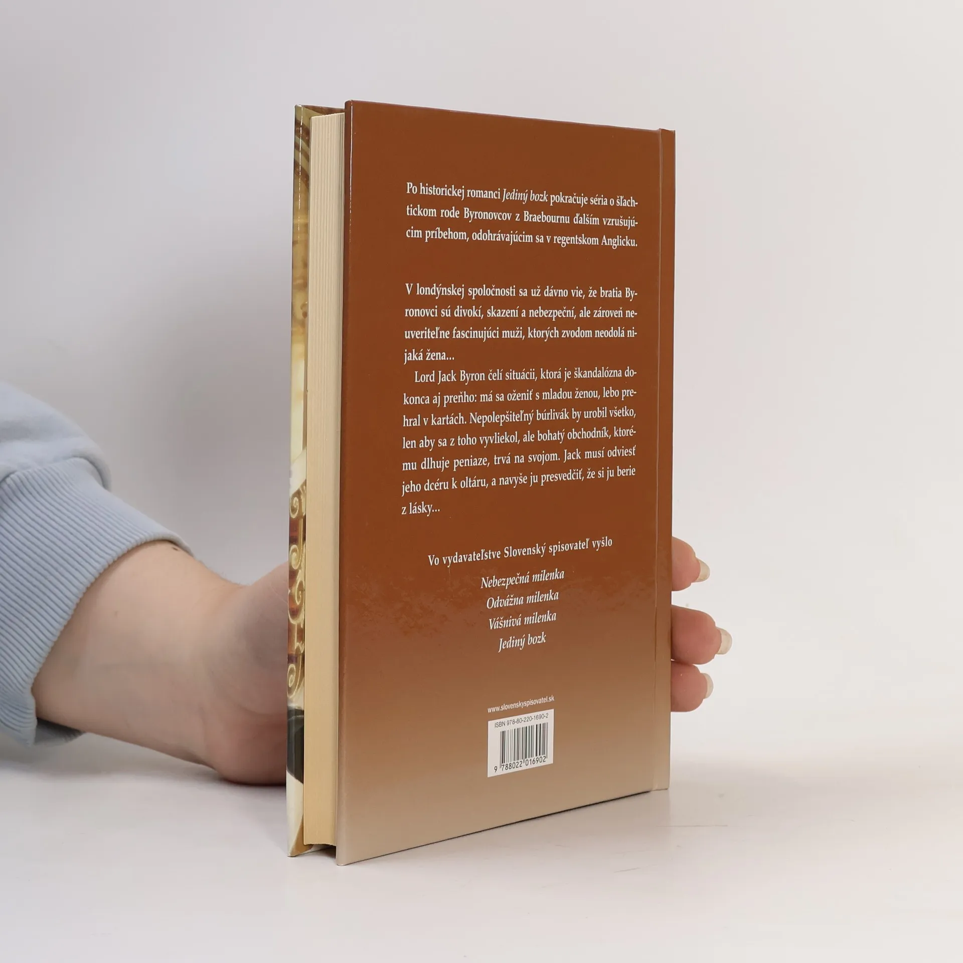 Po románe Jediný bozk pokračuje populárna séria o šľachtickom rode Byronovcov z Braebournu ďalším vzrušujúcim príbehom, odohrávajúcim sa v regentskom Anglicku. Lord Jack Byron čelí situácii, ktorá je škandalózna dokonca i preňho: kvôli prehre v kartách sa má oženiť s istou mladou ženou. Nepolepšiteľný búrlivák by urobil všetko, len aby sa z toho vyvliekol, ale bohatý obchodník, ktorému dlhuje peniaze, trvá na svojom. Jack musí odviesť jeho dcéru k oltáru, a navyše ju presvedčiť, že si ju berie z lásky...