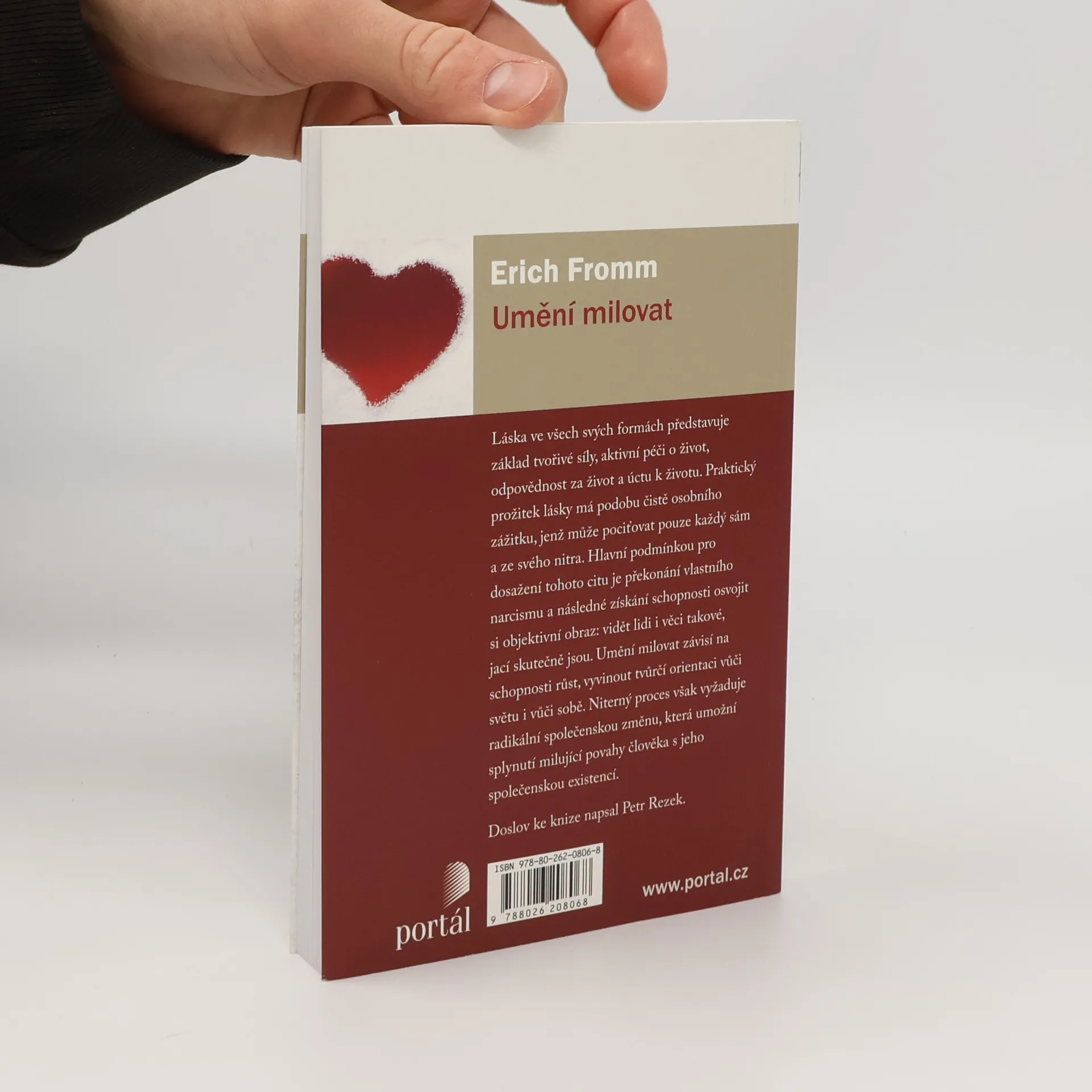 Láska ve všech svých formách představuje základ tvořivé síly, aktivní péči o život, odpovědnost za život a úctu k životu. Praktický prožitek lásky má podobu čistě osobního zážitku, jenž může pociťovat pouze každý sám a ze svého nitra. Hlavní podmínkou pro dosažení tohoto citu je překonání vlastního narcisismu a následné získání schopnosti osvojit si objektivní obraz: vidět lidi i věci takové, jací skutečně jsou. Umění milovat závisí na schopnosti růst, vyvinout tvůrčí orientaci vůči světu i vůči sobě. Niterný proces však vyžaduje radikální společenskou změnu, která umožní splynutí milující povahy člověka s jeho společenskou existencí. Erich Fromm (1900–1980) byl původem německý sociální psycholog, sociolog, humanistický filozof a demokratický socialista, spojený s tzv. frankfurtskou školou a s kulturní psychoanalýzou. Mezi jeho nejznámější knihy patří Strach ze svobody (Portál, 2014), Umění milovat, Anatomie lidské destruktivity, Mít, nebo být.