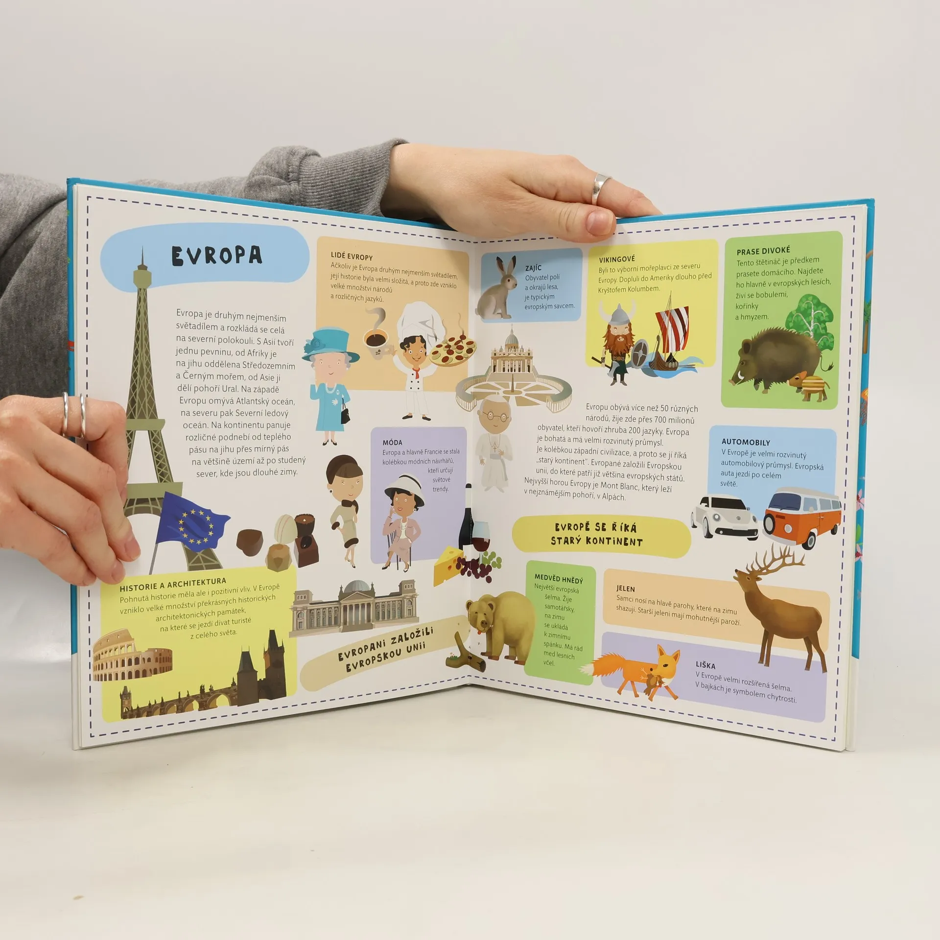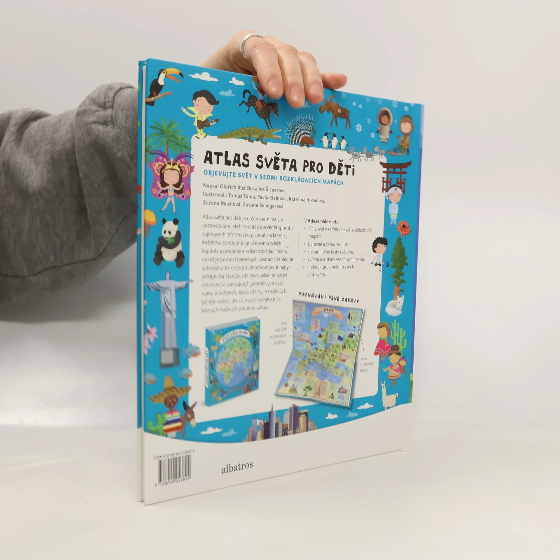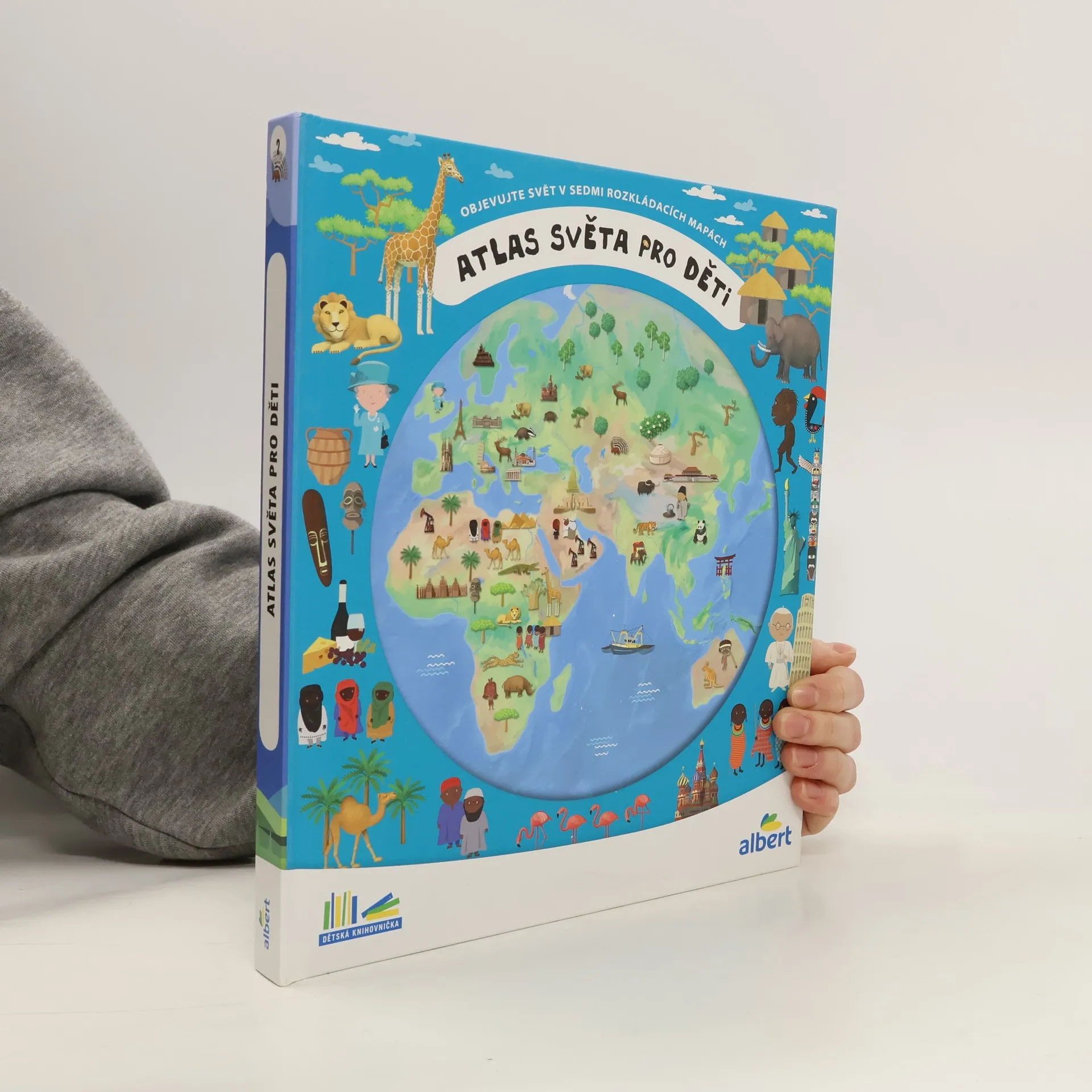 Atlas světa pro děti je určen všem malým cestovatelům, kteří se chtějí dozvědět spoustu zajímavých informací o planetě, na které žijí. Každému kontinentu je věnována zvláštní kapitola a především velká rozkládací mapa, na níž je pomoci barevných ilustrací přehledně zobrazeno to, co je pro daný kontinent nejtypičtější. Na čtenáře zde čeká velké množství informací o obyvatelích jednotlivých částí světa, o zvířatech, které zde žijí, o rostlinách, jež zde rostou, ale i o místní architektuře, lidových tradicích a kultuře vůbec. V Atlase naleznete celý svět v sedmi velkých rozkládacích mapách, patnáct vložených sešitků plných dalších podrobností a informací, barevné a zábavné ilustrace, srozumitelné texty i zábavu, zvířata a rostliny všech kontinentů, architekturu a kulturu všech částí světa.