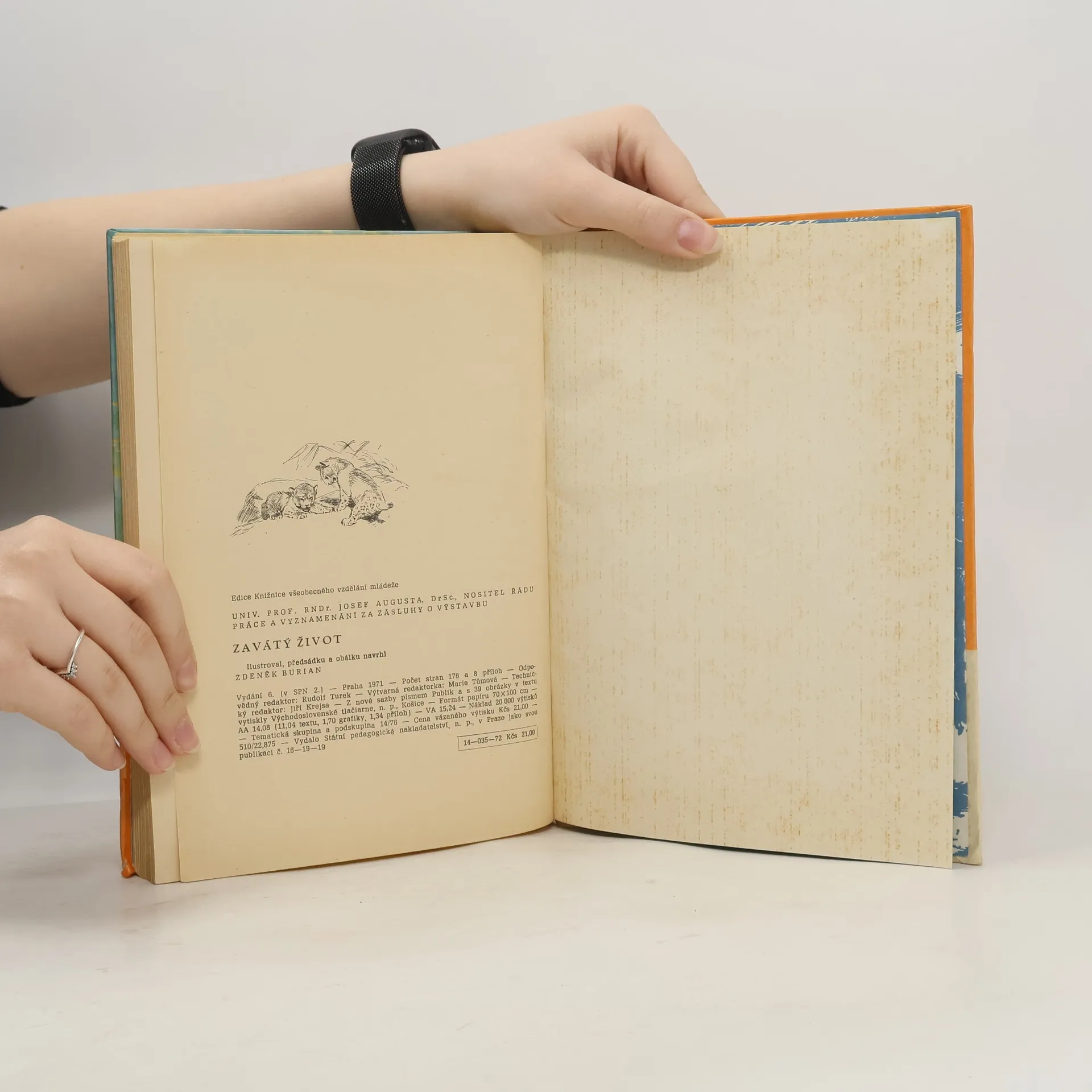 Magnificent illustrations by Zdeněk Burian! Very good print quality. Illustrated endpapers. For paleontology enthusiasts.