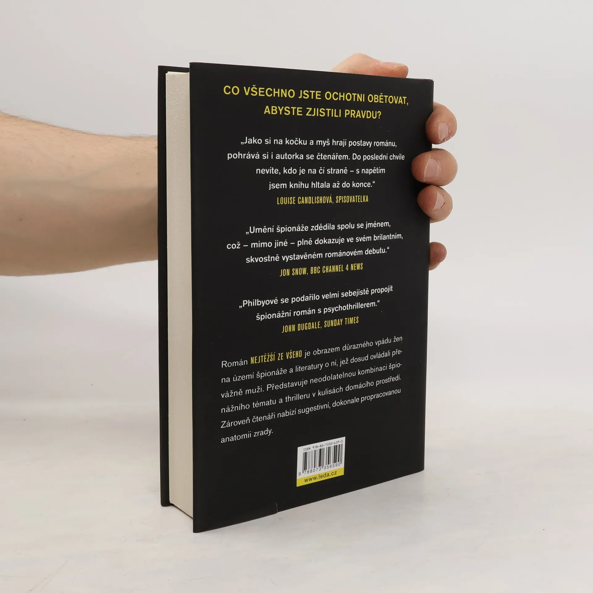 CO VŠECHNO JSTE OCHOTNI OBĚTOVAT, ABYSTE ZJISTILI PRAVDU? Anna Witherallová, redaktorka prestižního časopisu, žije zdánlivě dokonalý život se svým manželem Davidem a dvojčaty Stellou a Rose. Pod tímto povrchem se však skrývá hrozivé tajemství, které by mohlo zničit vše, co si vybudovala. Anna se ocitá v nebezpečném světě tajných služeb a musí čelit hrozbám, které ohrožují její rodinu i ji samotnou. Aby ochránila své děti, je nucena je opustit – navždy. Její situaci komplikuje tajemný sledovatel, jehož identita je nejasná. Může to být někdo, komu důvěřuje, kdo se snaží zajistit, aby oběť nebyla konečná. Avšak každý musí zaplatit za své činy. Anna si uvědomuje, že loučení s dětmi je silný moment, ale nakonec je rozhodnutí opustit je překvapivě hladké. Autorka mistrně hraje s napětím a čtenářem, který až do poslední chvíle neví, kdo je na čí straně. Román je důrazným vpádem žen do světa špionáže a thrilleru, který byl dosud doménou mužů. Nabízí kombinaci špionážního tématu a psychothrilleru v domácím prostředí a poskytuje sugestivní anatomii zrady.