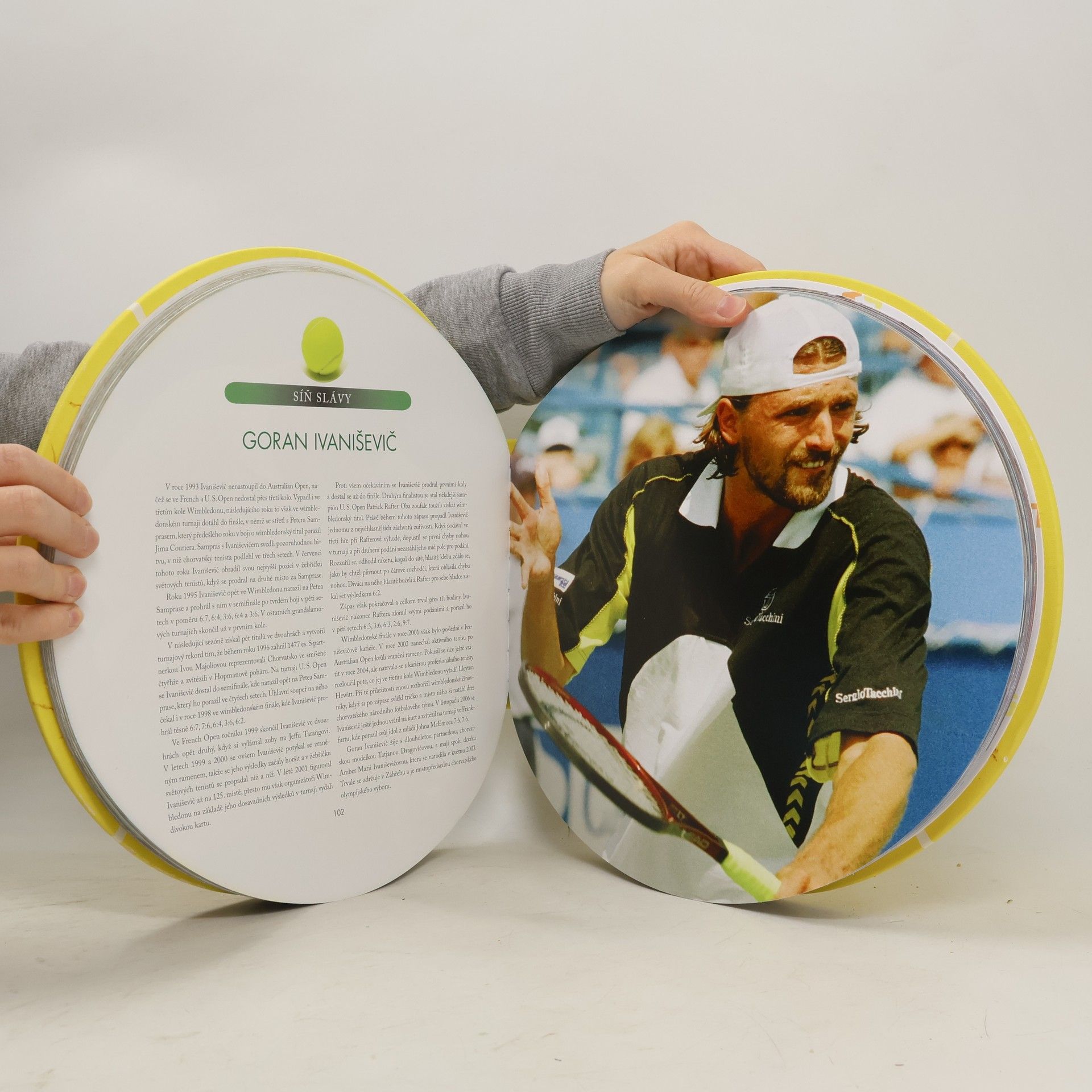 VÝJIMEČNÁ kniha ve tvaru plasticky ztvárněného tenisového míčku provedená v materiálu kopírující originál, upoutá již svou mimořádnou podobou. V netradiční publikaci najdete zajímavé informace o vzniku tohoto sportu, o největších světových soutěžích a turnajích. Nechybí medailony nejlepších světových tenistů. Jedinečné barevné zpracování publikace potěší srdce každého fanouška