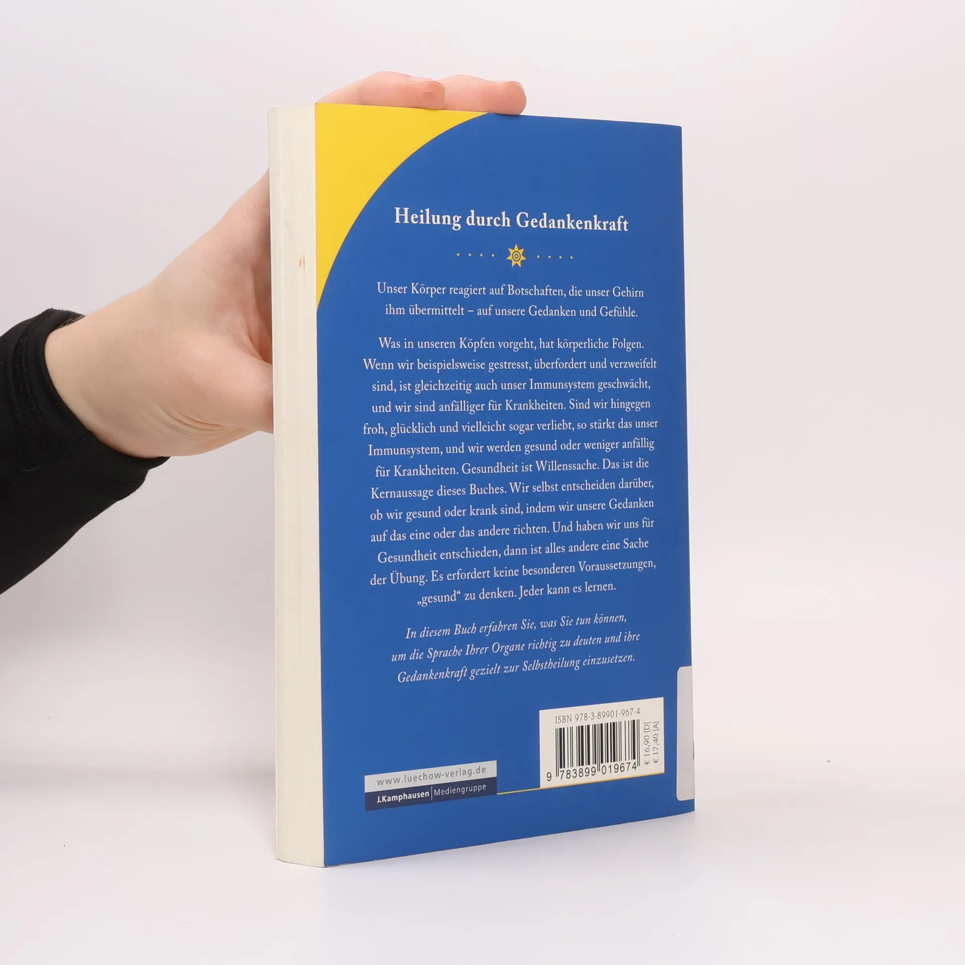 Heilung durch Gedankenkraft Unser Körper reagiert auf Botschaften, die unser Gehirn ihm übermittelt – auf unsere Gedanken und Gefühle. Was in unseren Köpfen vorgeht, hat körperliche Folgen. Wenn wir beispielsweise gestresst, überfordert und verzweifelt sind, ist gleichzeitig auch unser Immunsystem geschwächt, und wir sind anfälliger für Krankheiten. Sind wir hingegen froh, glücklich und vielleicht sogar verliebt, so stärkt das unser Immunsystem, und wir werden gesund oder weniger anfällig für Krankheiten. Gesundheit ist Willenssache. Das ist die Kernaussage dieses Buches. Wir selbst entscheiden darüber, ob wir gesund oder krank sind, indem wir unsere Gedanken auf das eine oder das andere richten. Und haben wir uns für Gesundheit entschieden, dann ist alles andere eine Sache der Übung. Es erfordert keine besonderen Voraussetzungen, „gesund“ zu denken. Jeder kann es lernen. In diesem Buch erfahren Sie, was Sie tun können, um die Sprache Ihrer Organe richtig zu deuten und ihre Gedankenkraft gezielt zur Selbstheilung einzusetzen.
