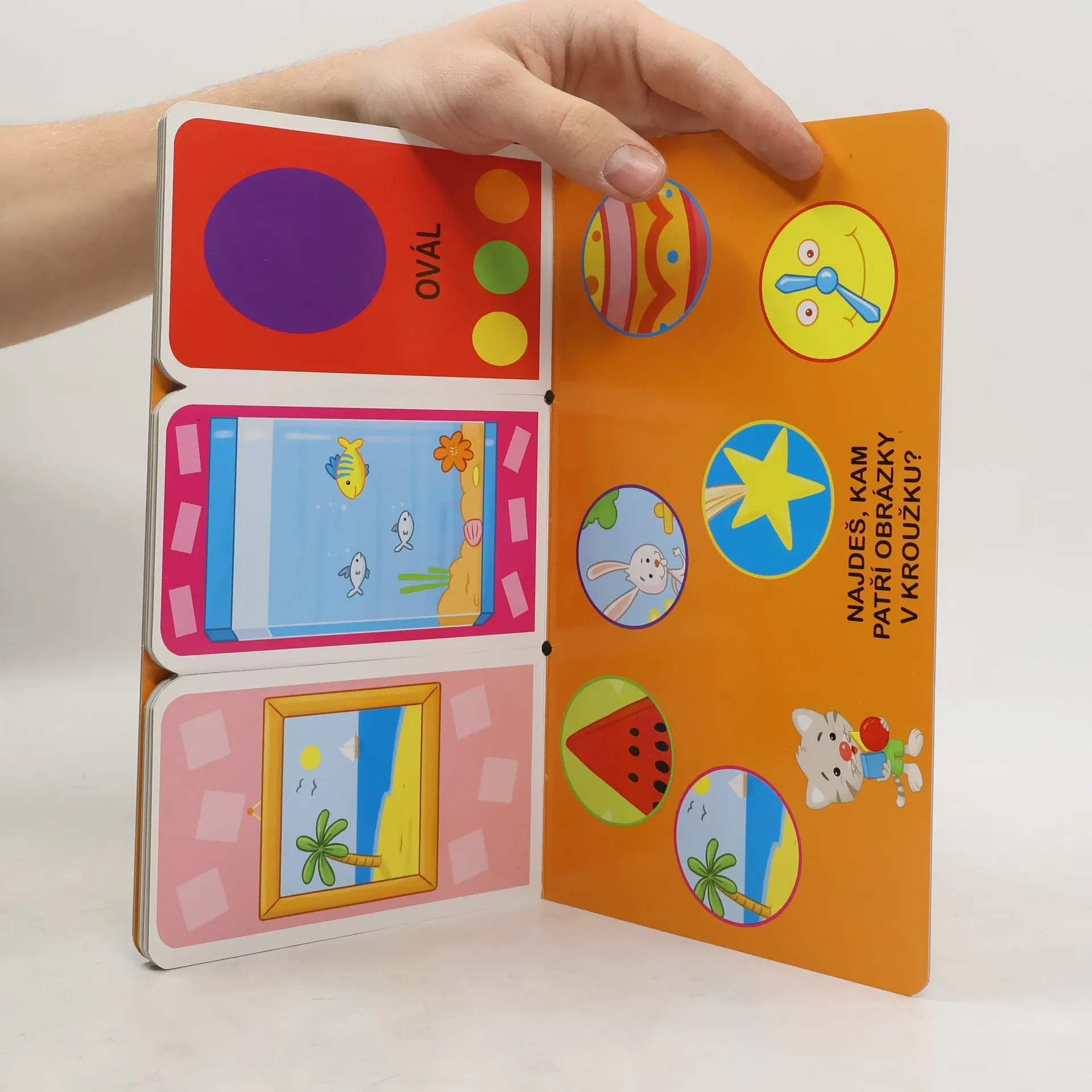 Zkus najít shodné tvary a barevné obrázky. Poznávej a uč se! Tato leporelová knížka je určena k rozvíjení logického myšlení u dětí mladšího předškolního věku.