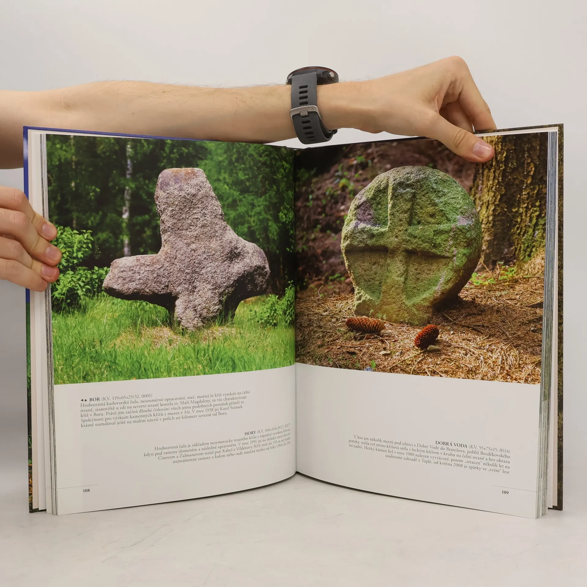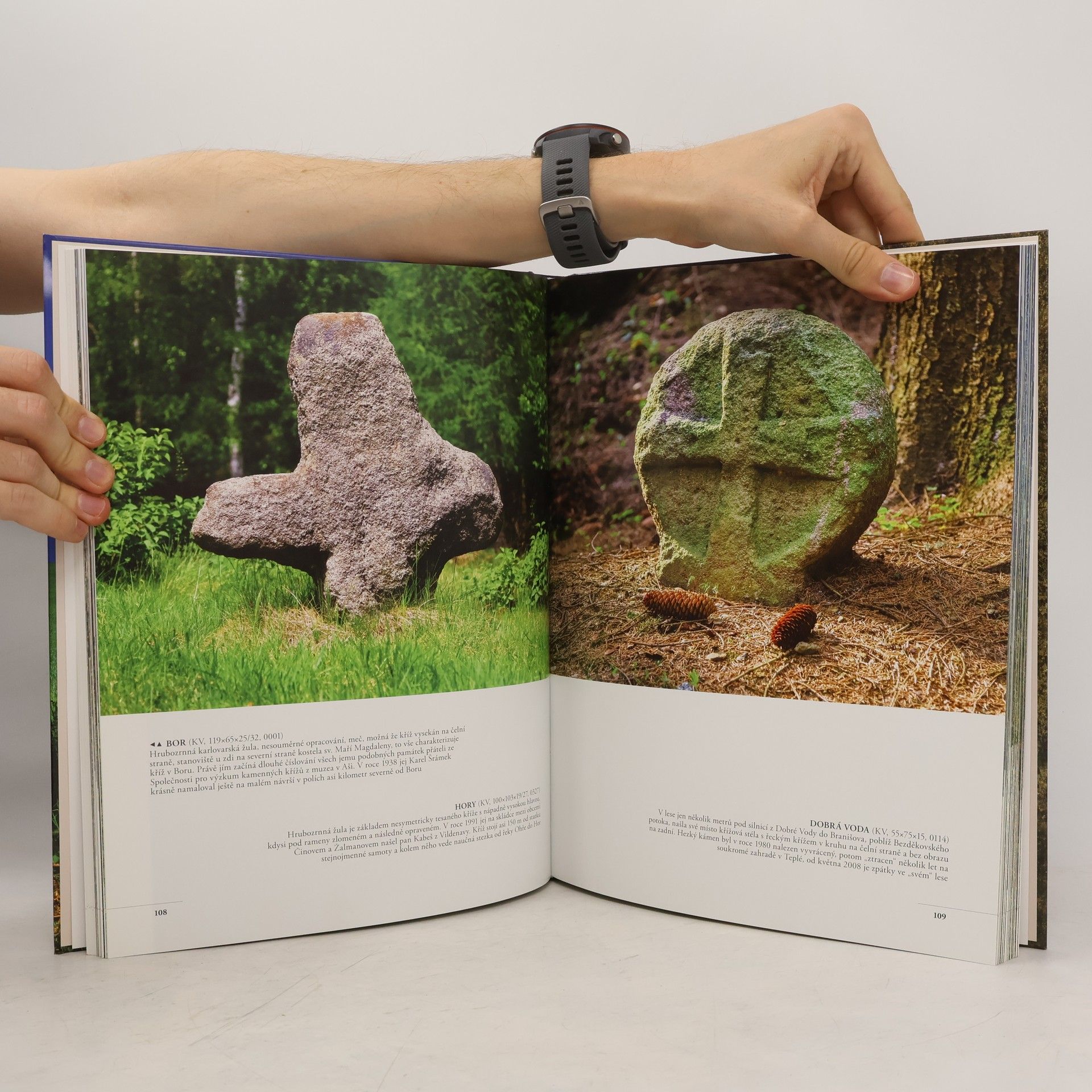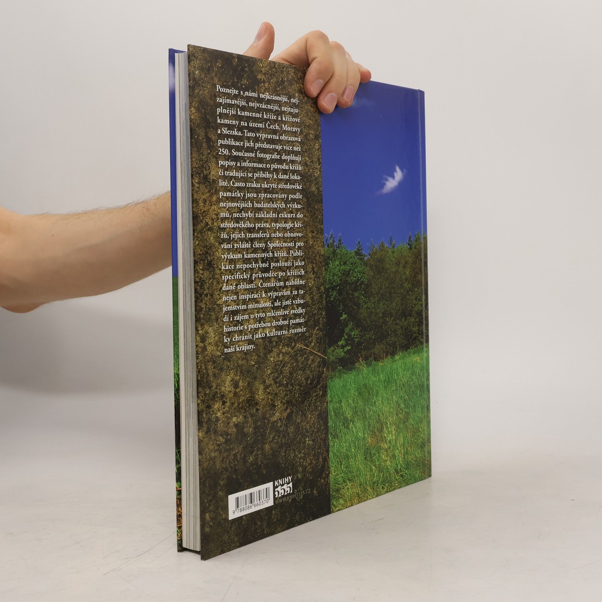 Originální obrazová publikace prezentuje nejkrásnější, nejzajímavější, nejtajuplnější, kamenné kříže a křížové kameny Čech, Moravy a Slezska. Navíc tyto drobné památky představuje v rozmanité atmosféře ročních dob, jako oprávněný krajinotvorný prvek ve všech oblastech naší vlasti. Více než 90% obrazového materiálu pro tuto knihu vzniklo díky nadšení a obětavosti fotografa Petra Bořila, který v řadě případů zajížděl ke křížům opakovaně, aby je zachytil právě v různých ročních obdobích a v nejaktuálnějším stavu. Úvodní kapitoly postihují tématiku kamenných křížů různou optikou, tedy pohledem historie, středověkého práva, smírčích smluv, typologie či jednotlivých příběhů, ale jsou také připomenutím nedávné minulosti a současnosti, ukazují, jak se tyto drobné památky neúnavnými a nadšenými lidmi udržují, zachraňují či znovuobnovují z hlubin minulých věků. V samém závěru dokončování knihy přišla myšlenka představit v malé galerii dávné i současné výtvarníky zachycující kamenné kříže. Hlavní, obrazová část je členěna podle krajů, a tak kniha může být jakýmsi speciálním průvodcem po kamenných křížích dané oblasti.