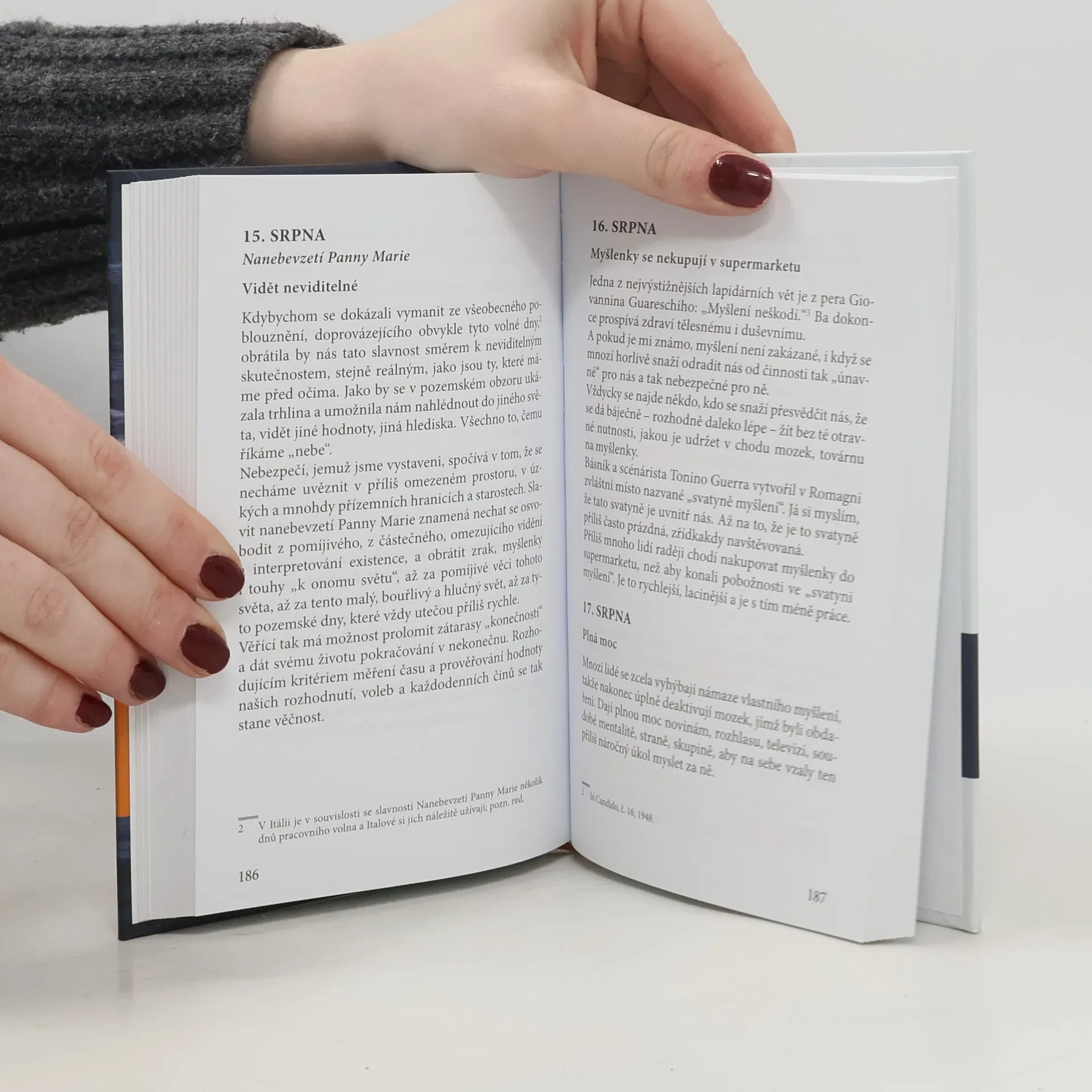 Kniha obsahuje zamyšlení na každý den v roce, a to z pera autora nebo jeho oblíbených myslitelů. Ve světle evangelia si bere na paškál některé modly a nešvary dnešní doby, přičemž každý měsíc je vždy věnován jednomu nosnému tématu. „Křesťan, který nechce zůstat uvězněn v tenatech dnešní mentality, propadnout se do bažiny banality, být pohlcen chřtánem všeobecného hloupnutí,… ale chce odolávat módám a pomrkávání po vládnoucích božstvech moci, zjevu, úspěchu a peněz, potřebuje znovu nalézt potěšení v přemýšlení a znovu navázat spojení se svým svědomím, příliš často dušeným a téměř utýraným okolním kraválem. Bratři, víte, že myšlení nejen neškodí, ale naopak prospívá zdraví naší víry?“ (z předmluvy)