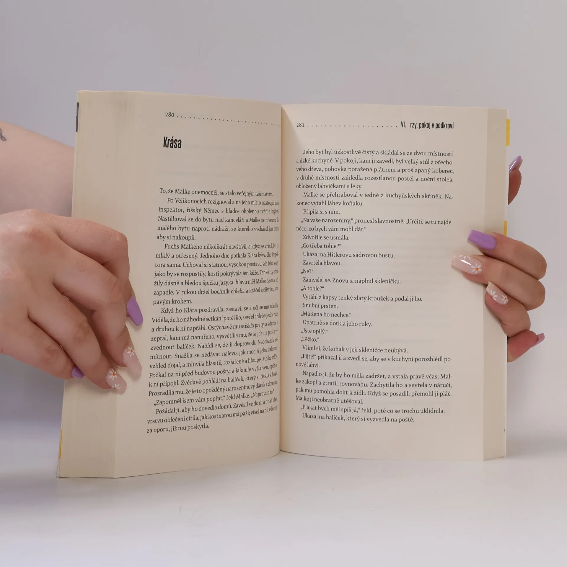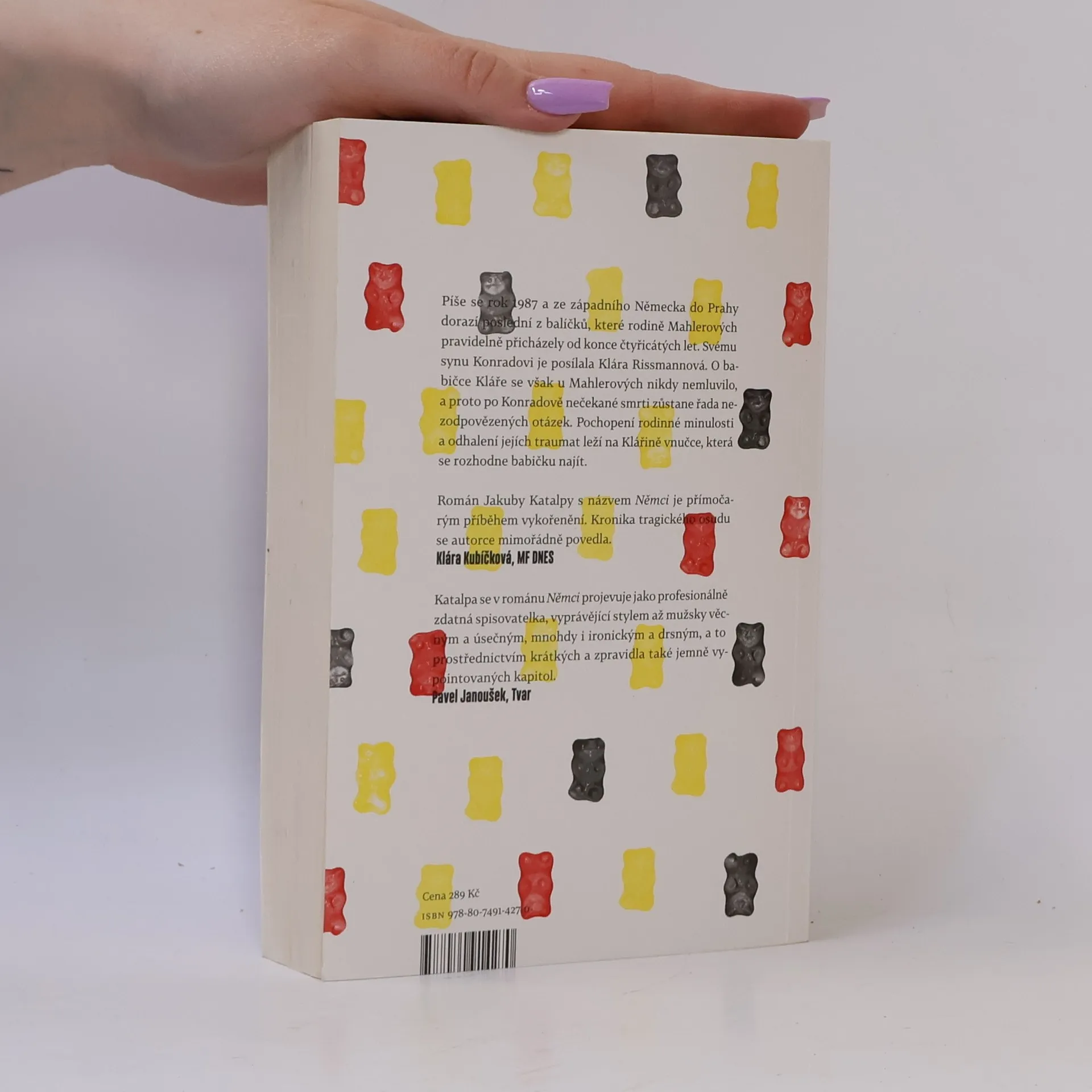 Hlavní hrdinka a současně vypravěčka románu žije v Londýně, kam odešla po listopadu 1989 za prací a kde nyní čeká své první dítě. Nadcházející mateřství ji v myšlenkách vrací do dětství v komunistickém Československu a vyvolává i zasutou vzpomínku na balíčky plné sladkostí, které dostávala od jakési babičky ze západního Německa… Třetí román mladé autorky Jakuby Katalpy čtenáře zavede až na počátek dvacátého století. Babička Klára Kolmannová stále žije a my sledujeme její osud od narození v roce 1910. Autorka mimořádně sugestivně a plasticky líčí život středostavovské německé rodiny na počátku století, útrapy první světové války a posléze vzestup fašismu ve třicátých letech. Přesto velké dějiny hrají jen okrajovou roli ve srovnání s rodinnými vztahy. Je tu Klářina psychicky labilní matka, prostopášný otec, i další příbuzenstvo a služebnictvo. Po začátku druhé světové války odchází Klára, čerstvá absolventka učitelského ústavu, do Berlína a poté se ocitá v českém pohraničí. Zde se sblíží s místním rasem, který ji přitahuje živočišnou tělesností a drsnou povahou…
