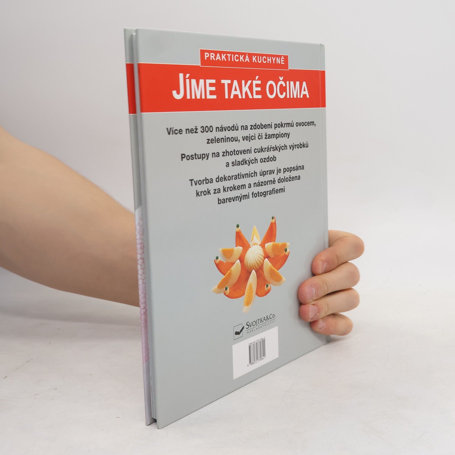 Kniha by bezpochyby mohla nést název "Jíme také očima". Nabídne vám více než 300 návodů na zdobení pokrmů ovocem, zeleninou, vejci ci žampiony apod. Najdete zde i postupy na zhotovení cukrářských výrobků a sladkých ozdob. Tvorba dekorativních úprav je popsána podrobně krok za krokem a názorně doložena barevnými fotografiemi.