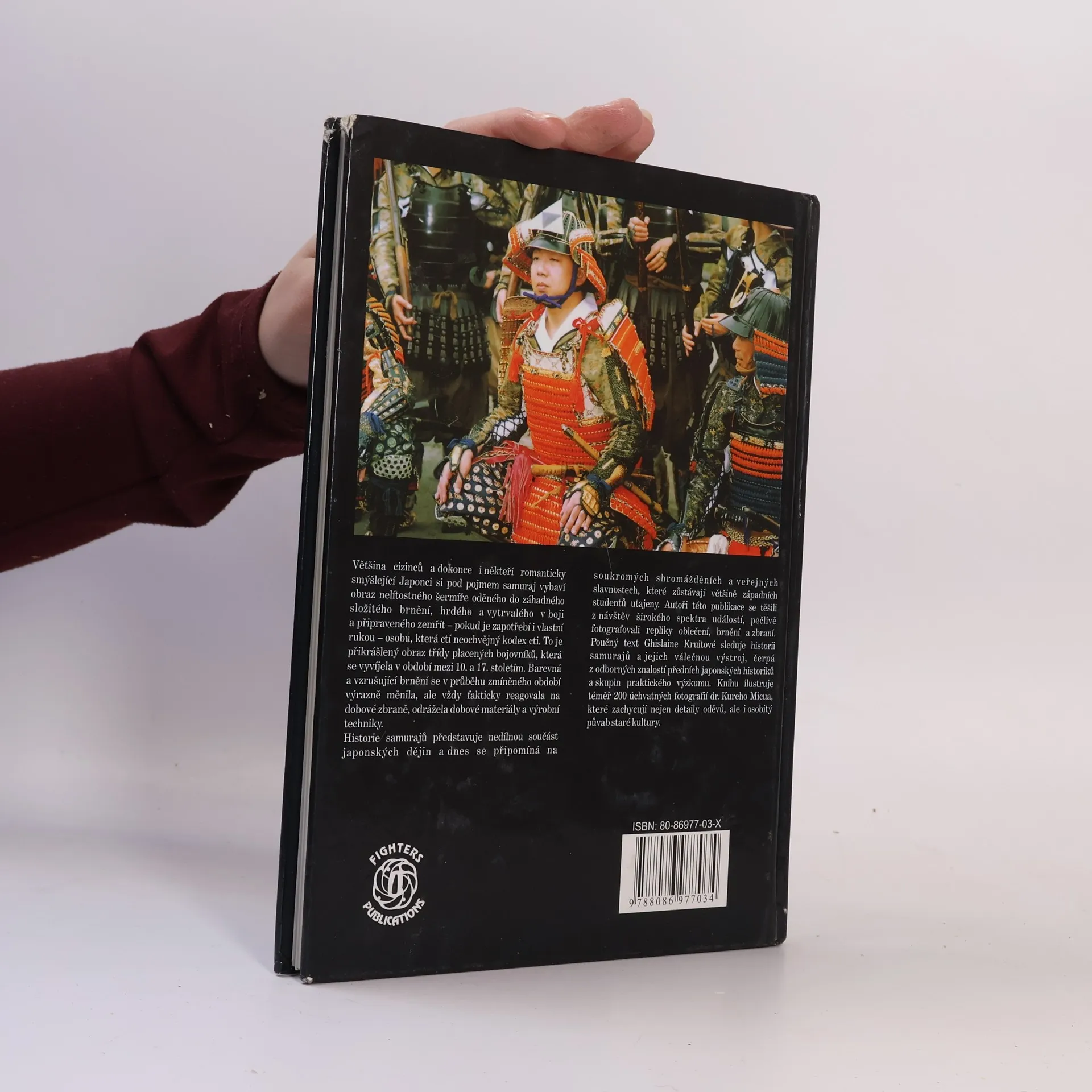 Pěkná fotografická publikace přináší na dvě stě barevných fotografií z dějin japonských samurajů. Samurajové byli žoldnéři najímaní k ochraně císaře nebo významných šlechtických rodů. Období jejich působení sahá od 8. do 17. století. Dějiny samurajů jsou spojeny s vojenskými dějinami Japonska v uvedeném období. Kniha chronologicky a stručně popisuje jednotlivá vojenská období v japonských dějinách a samurajskou úlohu v nich. Skutečným těžištěm knihy je ale popis vojenské výstroje a výzbroje samurajů, jejich vojenských brnění, uniforem a zbraní, kterých používali. Fotografie s popisky zachycují i nejmenší detaily na oblečení samurajů v jednotlivých dějinných obdobích. Kniha je tak působivým dokumentem o způsobu života a odívání jedné japonské společenské skupiny.