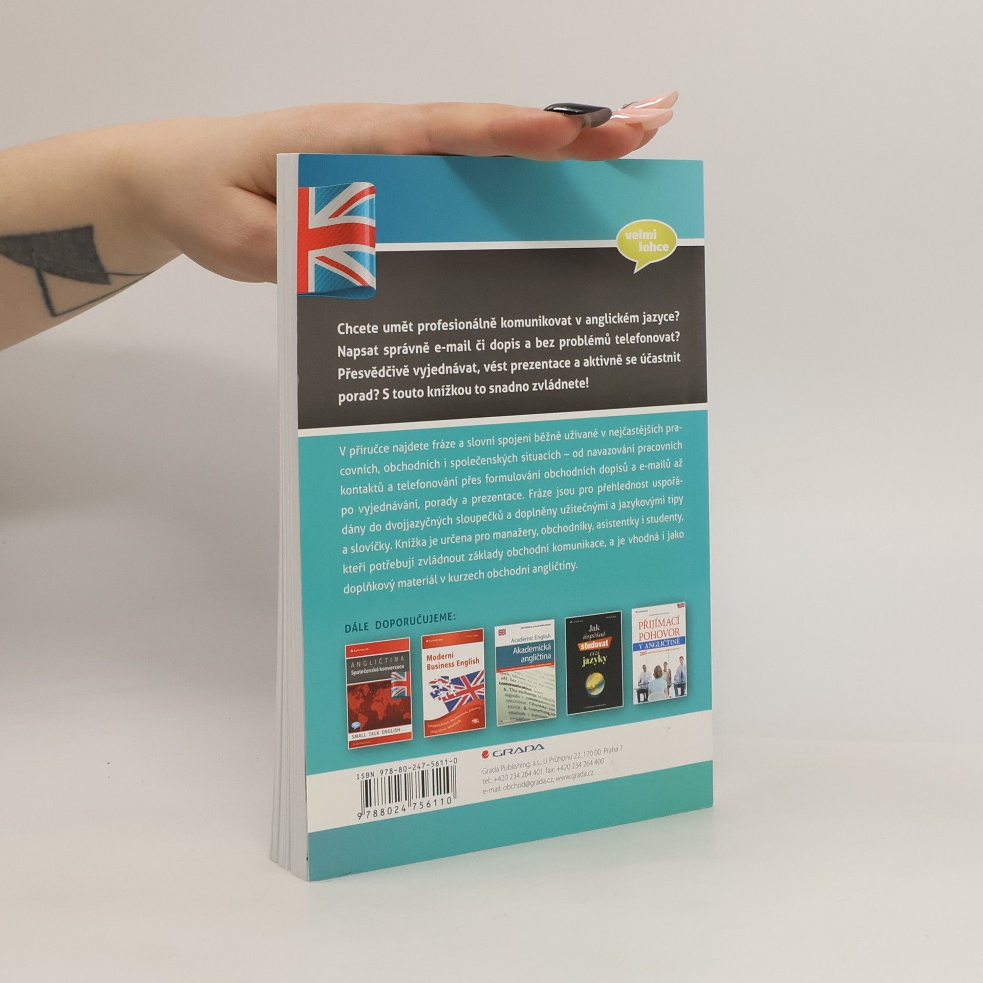 Chcete umět profesionálně komunikovat v anglickém jazyce? Napsat správně e-mail či dopis a bez problémů telefonovat? Přesvědčivě vyjednávat, vést prezentace a aktivně se účastnit porad? S touto knížkou to snadno zvládnete! V příručce najdete fráze a slovní spojení běžně užívané v nejčastějších pracovních, obchodních i společenských situacích – od navazování pracovních kontaktů a telefonování přes formulování obchodních dopisů a e-mailů až po vyjednávání, porady a prezentace. Fráze jsou pro přehlednost uspořádány do dvojjazyčných sloupečků a doplněny užitečnými a jazykovými tipy a slovíčky. Knížka je určena pro manažery, obchodníky, asistentky i studenty, kteří potřebují zvládnout základy obchodní komunikace, a je vhodná i jako doplňkový materiál v kurzech obchodní angličtiny.