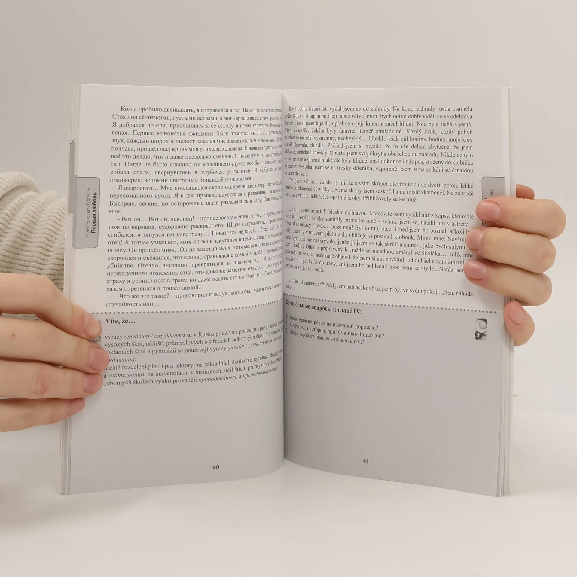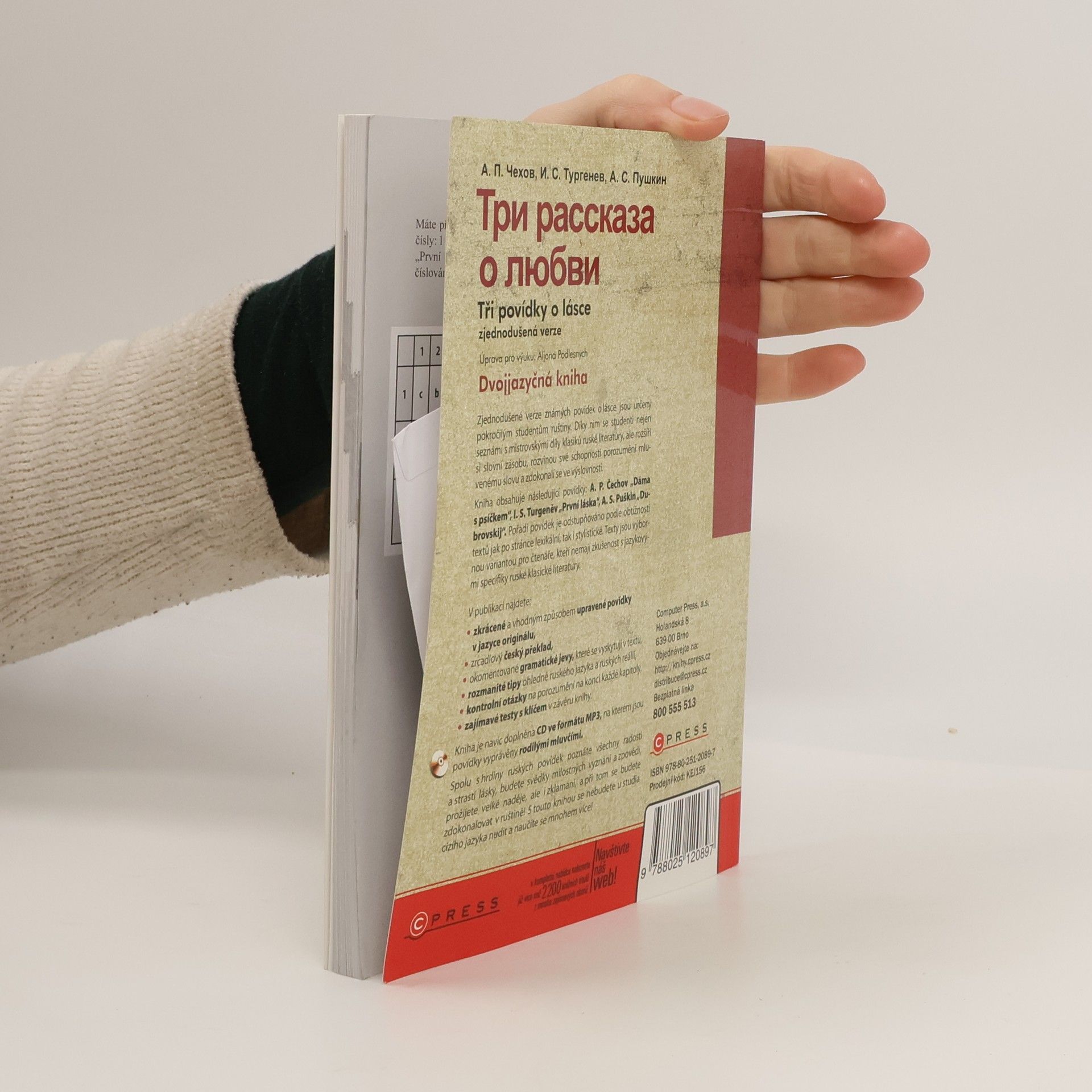 Zjednodušené verze známých povídek o lásce jsou určeny pokročilým studentům ruštiny. Díky nim se studenti nejen seznámí s mistrovskými díly klasiků ruské literatury, ale rozšíří si slovní zásobu, rozvinou své schopnosti porozumění mluvenému slovu a zdokonalí se ve výslovnosti. Kniha obsahuje následující povídky: A. P. Čechov „Dáma s psíčkem“, I. S. Turgeněv „První láska“, A. S. Puškin „Dubrovskij“. Pořadí povídek je odstupňováno podle obtížnosti textů jak po stránce lexikální, tak i stylistické. Texty jsou výbornou variantou pro čtenáře, kteří nemají zkušenost s jazykovými specifiky ruské klasické literatury. V publikaci najdete: - zkrácené a vhodným způsobem upravené povídky v jazyce originálu, - zrcadlový český překlad, - okomentované gramatické jevy, které se vyskytují v textu, - rozmanité tipy ohledně ruského jazyka a ruských reálií, - kontrolní otázky na porozumění na konci každé kapitoly, - zajímavé testy s klíčem v závěru knihy. Spolu s hrdiny ruských povídek poznáte všechny radosti a strasti lásky, budete svědky milostných vyznání a zpovědí, prožijete velké naděje, ale i zklamaní, a při tom se budete zdokonalovat v ruštině! S touto knihou se nebudete u studia cizího jazyka nudit a naučíte se mnohem více!