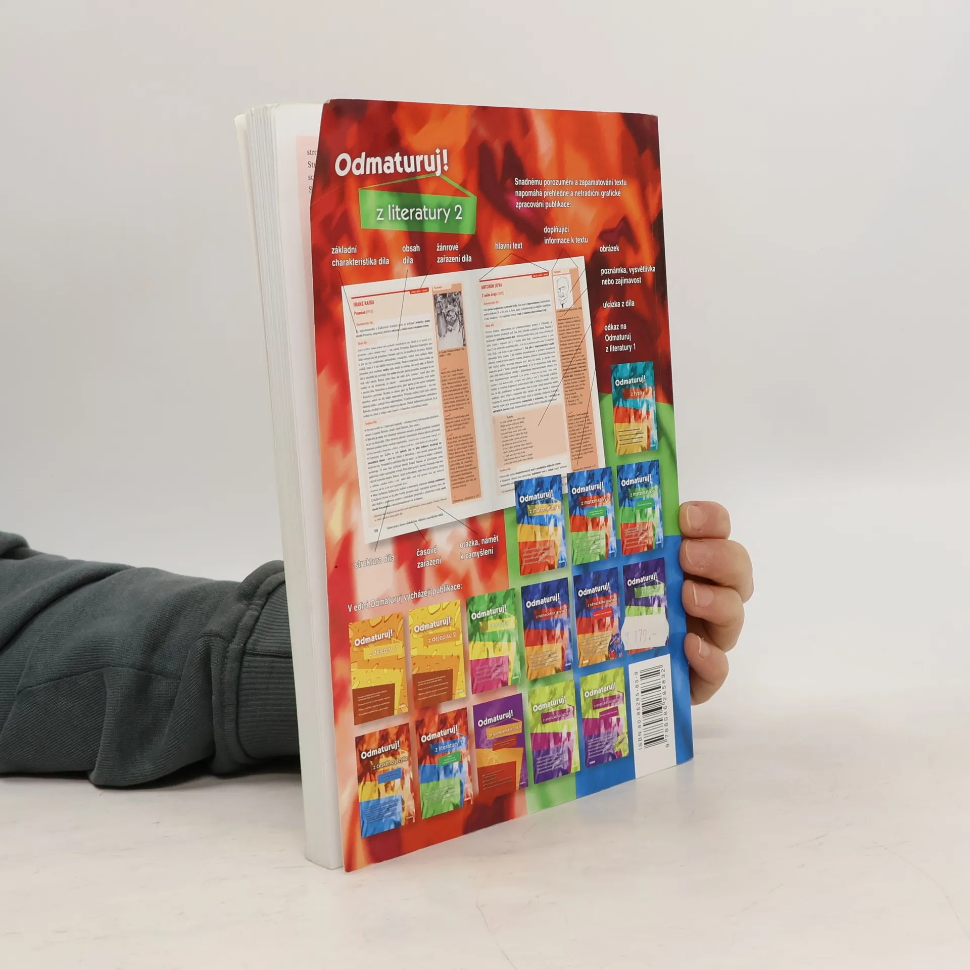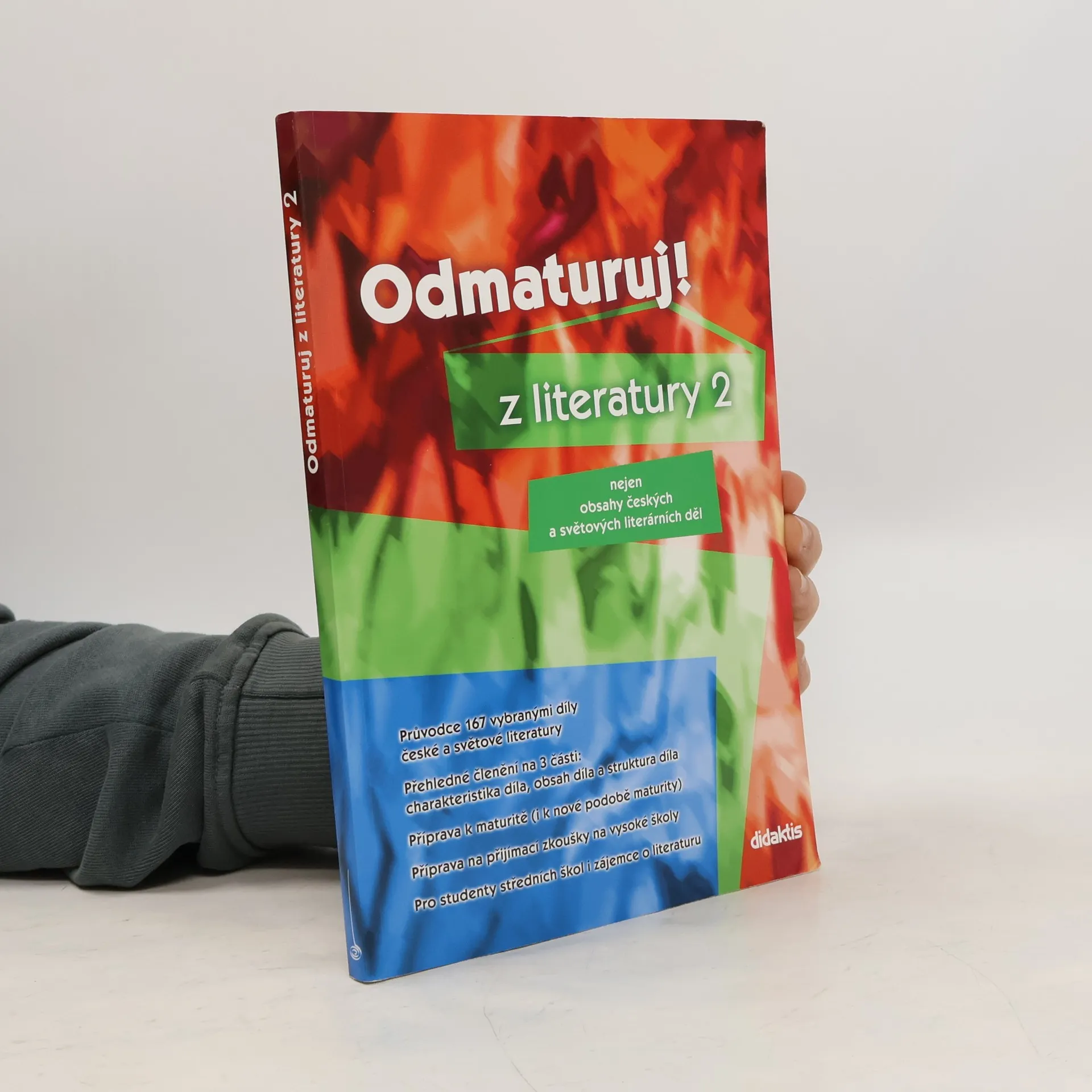 Poutavá učebnice určená k přípravě na maturitu (i k nové podobě maturity) a k přijímacím zkouškám na vysoké školy. Rozšiřuje poznatky z Odmaturuj z literatury 1, obsahuje 167 vybraných děl české a světové literatury od počátků do současnosti, zahrnuje prózu i poezii. Kniha je doplněna ukázkami z děl, podnětnými otázkami, vysvětlením literárněvědných pojmů, obrázky, poznámkami a zajímavostmi. * Každému dílu je věnována jedna strana a text je přehledně členěn na 3 části.