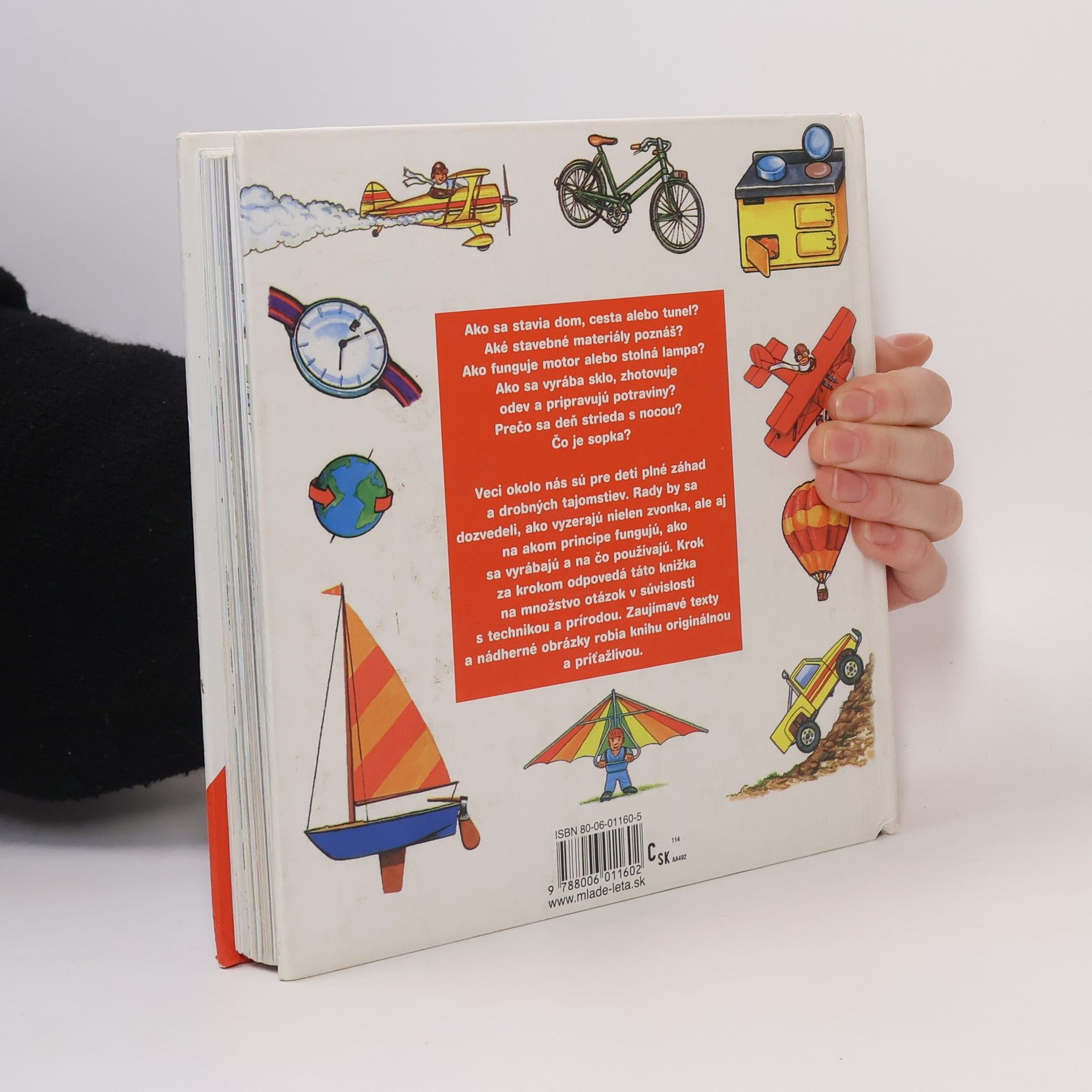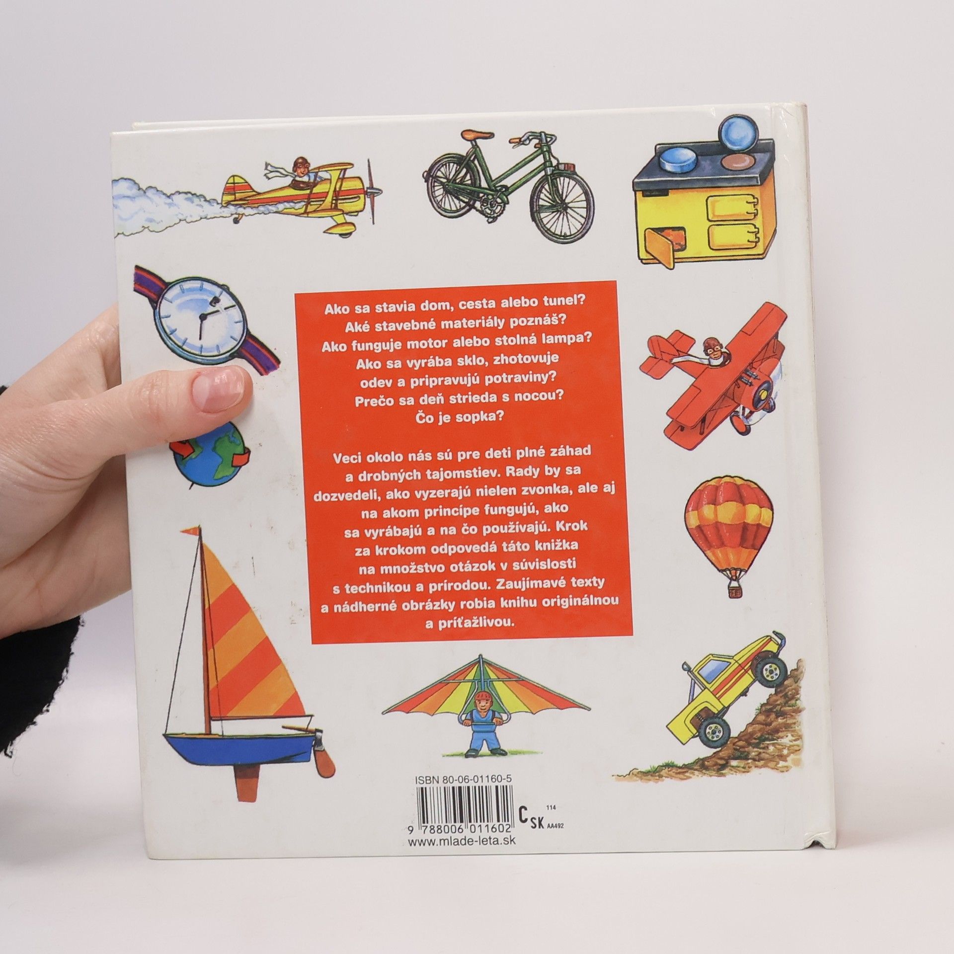 Veci okolo nás sú pre deti plné záhad a drobných tajomstiev. Rady by sa dozvedeli, ako vyzerajú nielen zvonka, ale aj na akom princípe fungujú, ako sa vyrábajú a na čo používajú. A práve táto knižka, krok za krokom odpovedá na niektoré z nich... Z obsahu: Vozidlá na kolesách Plavidlá Dopravné prostriedky vo vzduchu Naša zem Čo sa deje v prírode Vesmír a cesta do vesmíru Slnko, Mesiac a hviezdy Potraviny