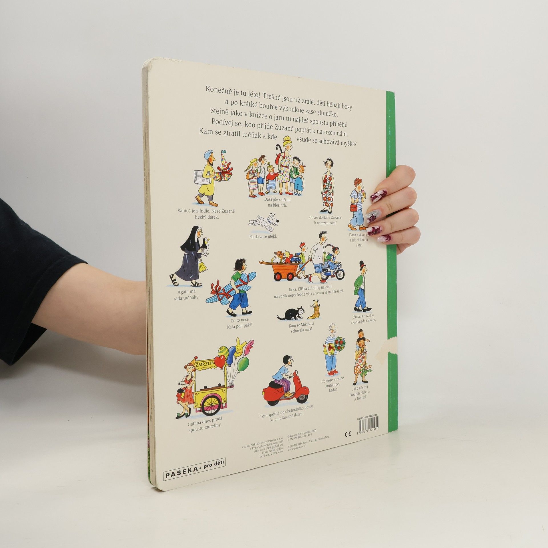 Po knížce o jaru přichází Léto. Autorka na obrázcích znovu vypráví své malé, vtipné příběhy všedního dne, které poutají a bystří pozornost, podněcují fantazii a řečové schopnosti, ale hlavně baví malé i větší děti. V atmosféře slunného léta se opět setkáte s některými starými známými a kamarády z předchozí knížky Jaro. Přibudou další postavy, věci a zvířátka.