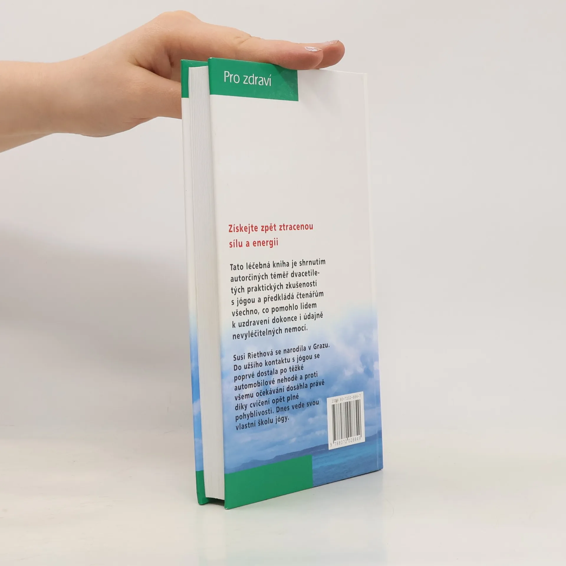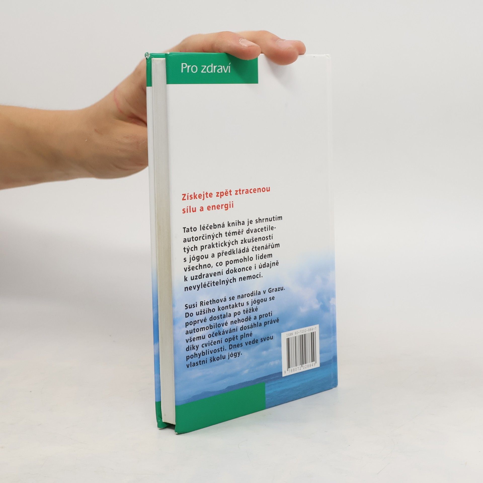 Získejte zpět ztracenou sílu a energii. Tato léčebná kniha je shrnutím autorčiných téměř dvacetiletých praktických zkušeností s jógou a předkládá čtenářům všechno, co pomohlo lidem k uzdravení dokonce i údajně nevyléčitelných nemocí. Susi Riethová se narodila v Grazu. Do užšího kontaktu s jógou se poprvé dostala po těžké automobilové nehodě a proti všemu očekávání dosáhla právě díky cvičení opět plné pohyblivosti. Dnes vede svou vlastní školu jógy.