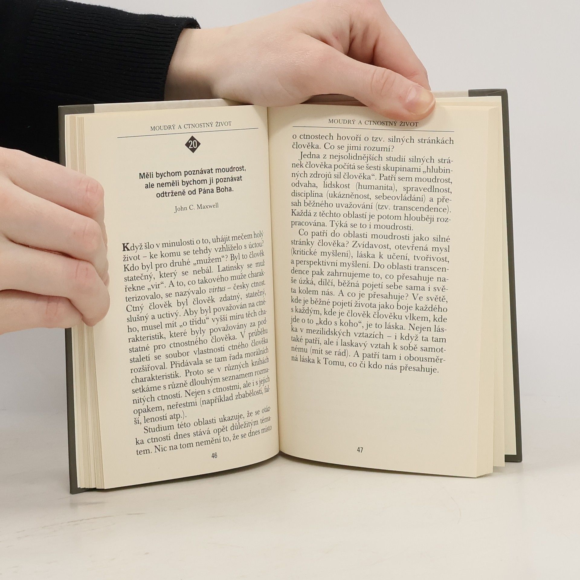Co je moudrost a proč ji považujeme za jednu z nejsilnějších stránek člověka, když máme na mnoho věcí často protikladný názor? Do moudrosti patří zvídavost, otevřená mysl, láska k učení, tvořivost i perspektivní myšlení. Náleží sem jistě i schopnost překračovat naše úzká a dílčí měřítka, skrze něž hledíme na sebe, na druhé i na svět kolem nás. Jaro Křivohlavý přemítá nad obsahem, projevy a cíli opravdové moudrosti, nad tím, kde ji můžeme hledat i jak můžeme v moudrosti růst. Není náhoda, že tuto ctnost většina lidí uvádí na prvním místě ve svém žebříčku hodnot a velmi si ji cení i u druhých.