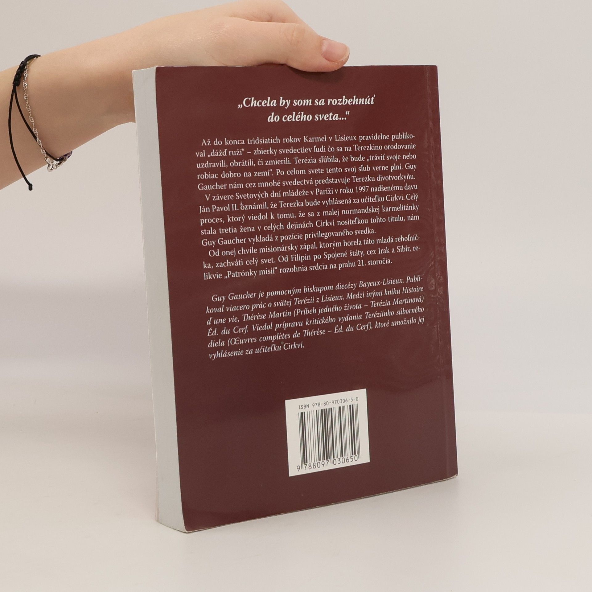 Až do konca tridsiatich rokov Karmel v Lisieux pravidelne publikoval „dážď ruží“ – zbierky svedectiev ľudí čo sa na Terezkino orodovanie uzdravili, obrátili, či zmierili. Terézia sľúbila, že bude „tráviť svoje nebo robiac dobro na zemi“. Po celom svete tento svoj sľub verne plní. Guy Gaucher nám cez mnohé svedectvá predstavuje Terezku divotvorkyňu. V závere Svetových dní mládeže v Paríži v roku 1997 nadšenému davu Ján Pavol II. oznámil, že Terezka bude vyhlásená za učiteľku Cirkvi. Celý proces, ktorý viedol k tomu, že sa z malej normandskej karmelitánky stala tretia žena v celých dejinách Cirkvi nositeľkou tohto titulu, nám Guy Gaucher vykladá z pozície privilegovaného svedka. Od onej chvíle misionársky zápal, ktorým horela táto mladá rehoľníčka, zachvátil celý svet. Od Filipín po Spojené štáty, cez Irak a Sibír, relikvie „Patrónky misií“ rozohnia srdcia na prahu 21. Storočia. Guy Gaucher je pomocným biskupom diecézy Bayeux-Lisieux. Publikoval viacero prác o svätej Terézii z Lisieux. Medzi inými knihu Histoire d´une vie, Thérèse Martin (Príbeh jedného života – Terézia Martinová) Éd. du Cerf. Viedol prípravu kritického vydania Teréziinho súborného diela (OEuvres complètes de Thérèse - Éd. du Cerf), ktoré umožnilo jej vyhlásenie za učiteľku Cirkvi.