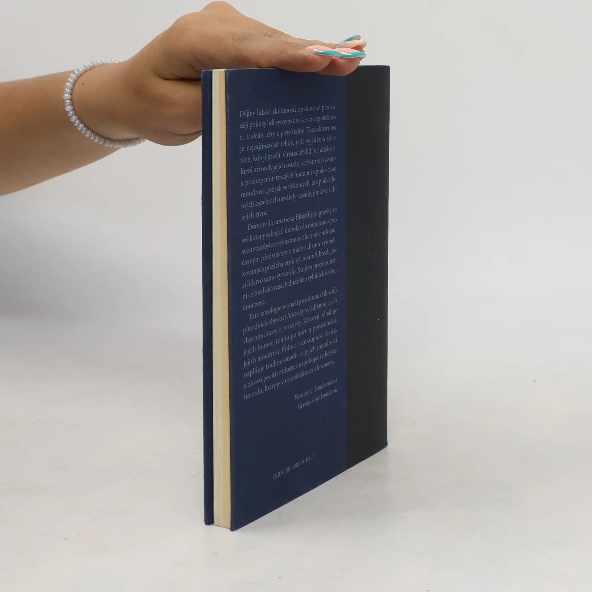 Dějiny lidské zkušenosti opakovaně předvádějí pokusy lidí vyrovnat se se svou společností, s ideály, city a prostředím. Tato zkušenost je nejzajímavější tehdy, je-li vyjádřena slovy těch, kdo jí prošli. V reakcích lidí na události, které určovaly jejich osudy, se často setkáváme s pochopením trvalých hodnot i s praktickou moudrostí, jež jak ve vědomých, tak podvědomých aspektech utvářely zásady, jimiž se řídil jejich život. Domorodá americká filozofie je právě pro své kořeny sahající hluboko do minulosti a pro svou starobylost Významnou alternativou k současným představám o materialismu, vyumělkovaných pózách a etnických konfliktech, jež si lidstvo samo vytvořilo. Stojí za prozkoumání i z hlediska našich dnešních vyhlídek do budoucnosti. Tato antologie se snaží postihnout filozofii původních obyvatel Ameriky vyjádřenou jejich vlastními slovy a prožitky. Zároveň odhaluje jejich humor, touhu po míru a porozumění, jejich moudrost, hrdost a důstojnost. To nás naplňuje touhou otevřít se jejich moudrosti a znovu pocítit radostné uspokojení z lidského rodu, který je v sounáležitosti s kosmem. Frances G. Lombardiová, Gerald Scott Lombardi