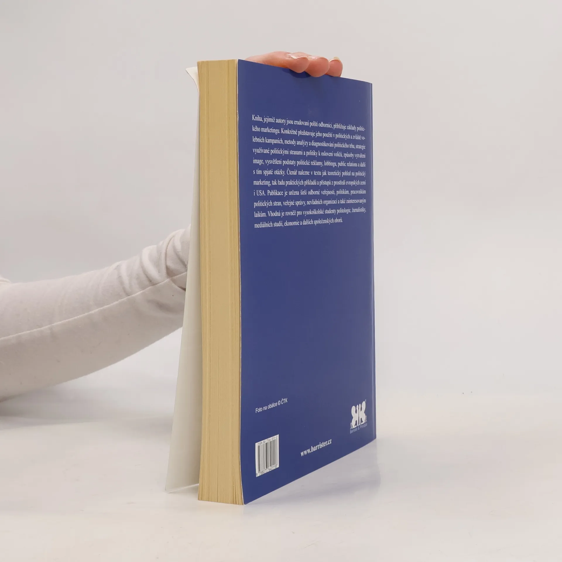 Kniha, jejímiž autory jsou erudovaní polští odborníci, přibližuje základy politického marketingu. Konkrétně představuje jeho použití v politických a zvláště volebních kampaních, metody analýzy a diagnostikování politického trhu, strategie využívané politickými stranami a politiky k oslovení voličů, způsoby vytváření image, vysvětlení podstaty politické reklamy, lobbingu, public relations a další s tím spjaté otázky. Čtenář nalezne v textu jak teoretický pohled na politický marketing, tak řadu praktických příkladů a přístupů z prostředí evropských zemí i USA. Publikace je určena širší odborné veřejnosti, politikům, pracovníkům politických stran, veřejné správy, nevládních organizací a také zainteresovaným laikům. Vhodná je rovněž pro vysokoškolské studenty politologie, žurnalistiky, mediálních studií, ekonomie a dalších společenských oborů.