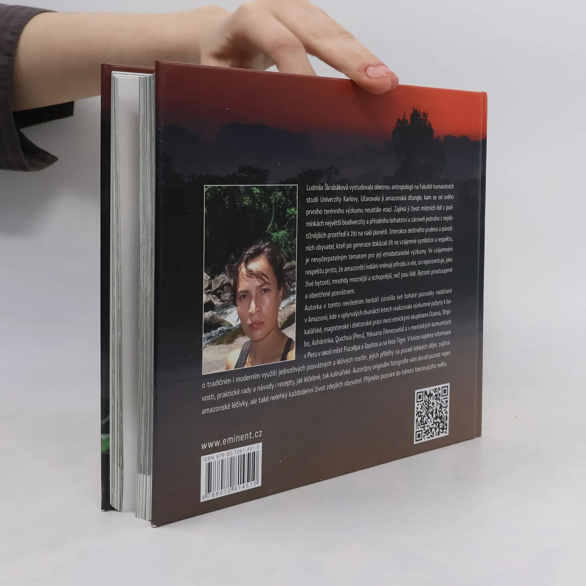 Mgr. Ludmila Škrabáková, doktorandka na Fakultě humanitních studií Univerzity Karlovy, se specializuje na obecnou antropologii a fascinují ji amazonské džungle. Od svého prvního výzkumu k bakalářské práci se neustále vrací do této oblasti, aby zkoumala život místních obyvatel v prostředí s největší biodiverzitou a přírodním bohatstvím, ale také v jednom z nejobtížnějších prostředí na Zemi. Její etnobotanické výzkumy se zaměřují na interakci deštného pralesa a původních obyvatel, kteří žijí v symbióze a respektu k přírodě, kterou vnímají jako živé bytosti, často mocnější než lidé. V tomto herbáři autorka shrnuje bohaté poznatky z dvanáctiletého výzkumu mezi etnickými skupinami jako Ocaina, Shipibo, Asháninka, Quichua (Peru), Yekuana (Venezuela) a mestickými komunitami v Peru. Kniha obsahuje informace o posvátných a léčivých rostlinách, jejich příběhy, praktické rady, návody a recepty na léčebné i kulinářské využití. Originální fotografie autorky přibližují nejen amazonské léčivky, ale i každodenní život místních obyvatel. Přijměte pozvání do fascinujícího světa amazonské džungle.