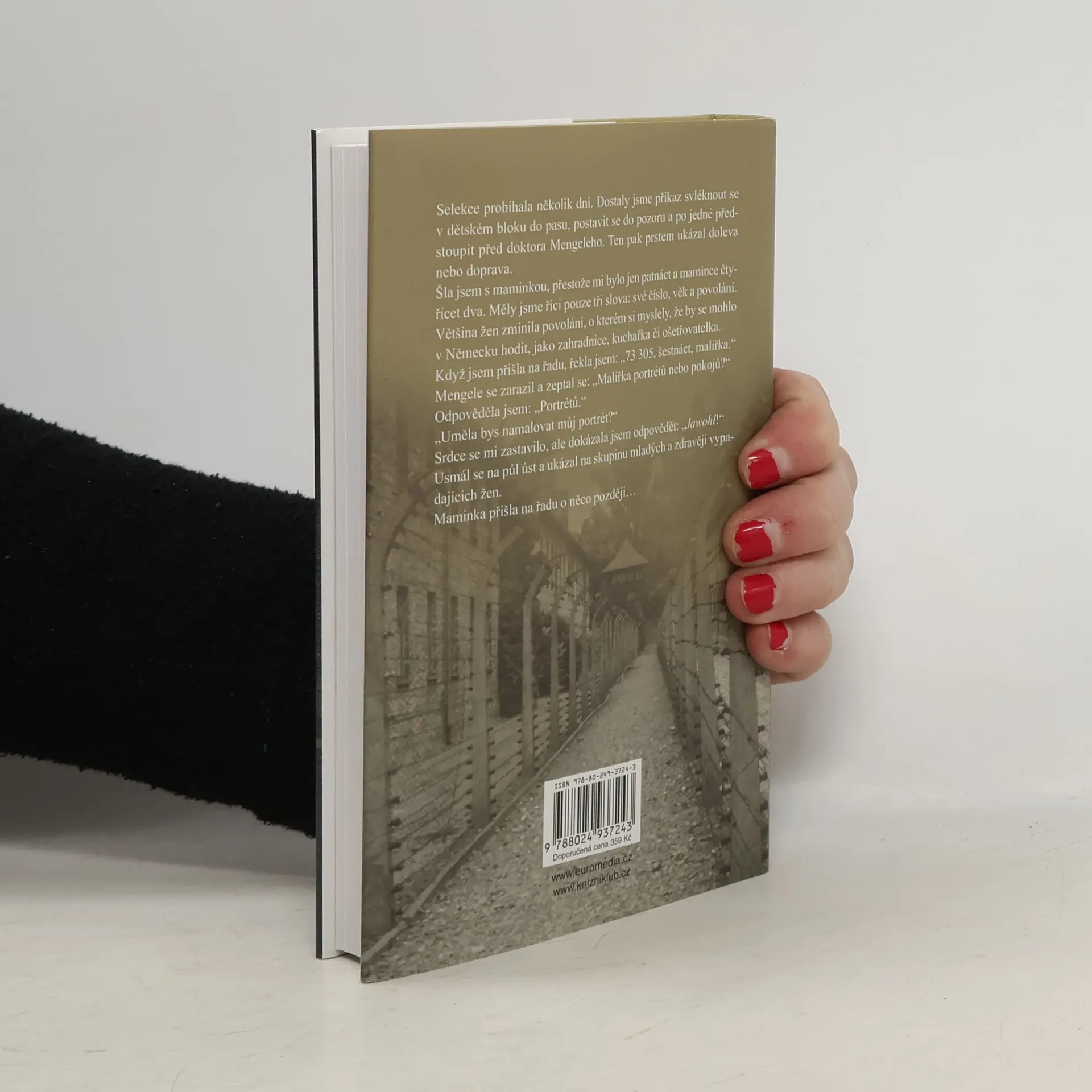 Biografie pražské rodačky Dity Krausové (nar. 1929), která prošla Terezínem, Osvětimí a Bergen-Belsenem. Ve své biografii popisuje dětství v Praze, vzpomíná na rodiče a kamarády. V listopadu 1942 přišlo předvolání do transportu a rodina putovala nejprve do Terezína a pak do Osvětimi. Autorka popisuje zdejší kruté podmínky: nedostatek jídla, pach spálených lidských těl a všudypřítomný popel poletující vzduchem. Poznala i nechvalně proslulého lékaře Josefa Mengeleho. V březnu 1944 jí hladem a vyčerpáním zemřel otec, v červnu prošla i s matkou selekcí a byly vybrány na práci v Hamburku, kde zažily spojenecké nálety. Po válce se Dita vrátila do Prahy, kde potkala svého budoucího manžela, spisovatele Otu B. Krause. V roce 1949 oba odjeli hromadným transportem přes Rakousko a Itálii do Izraele. Autorčin příběh se stal předlohou pro hlavní hrdinku v knize Osvětimská knihovnice od španělského autora Antonia Iturbeho.