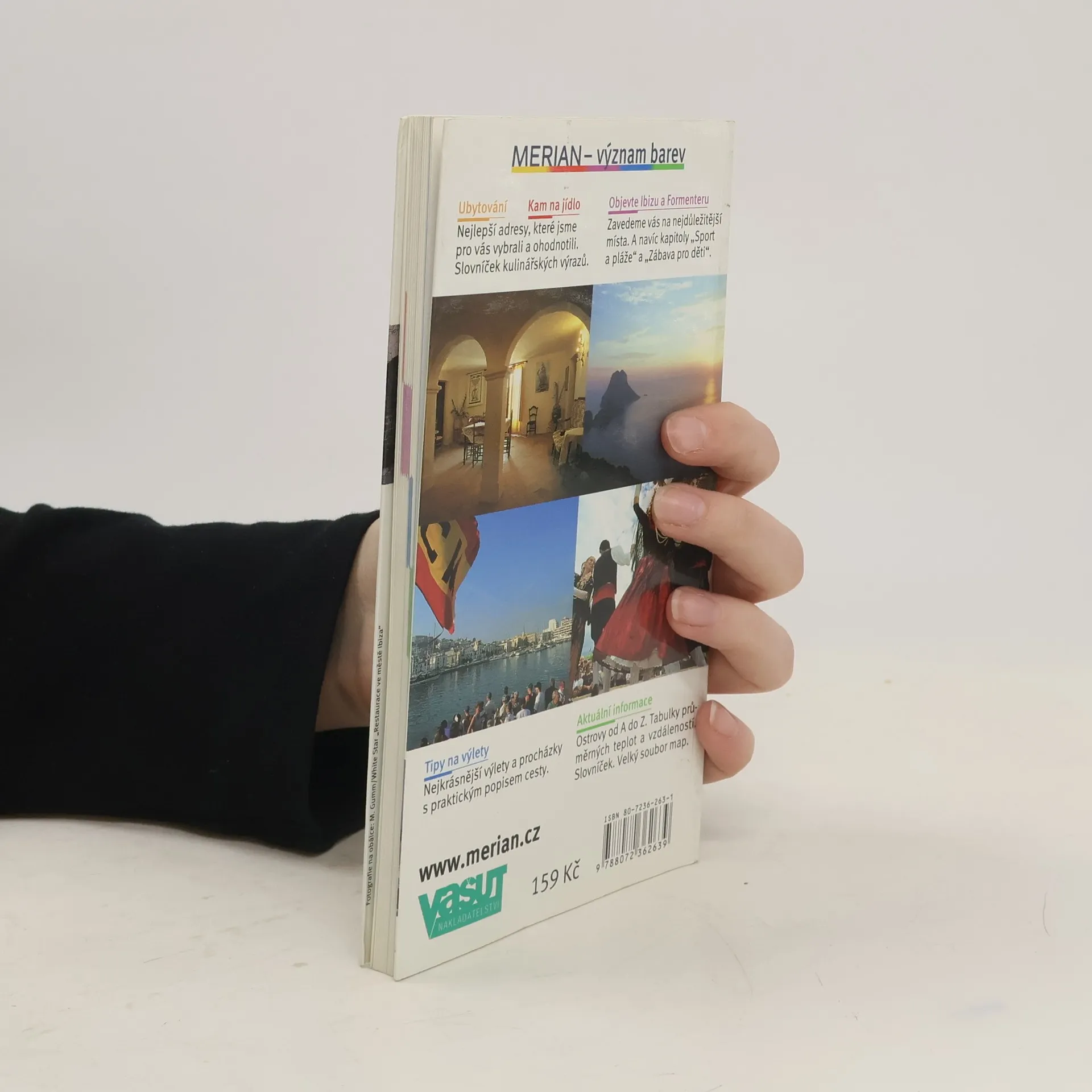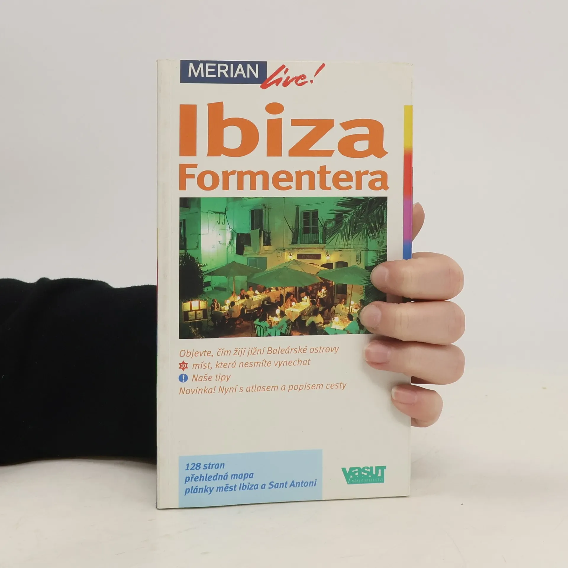 Průvodce seznamuje ve stručnosti s nejvýznamnějšími kulturně-uměleckými památkami a přírodními zajímavostmi dvou oblíbených jihobaleárských ostrovů. Česká mutace jednoho ze svazků německé ediční řady průvodců "Merian" přibližuje čtenářům popis zajímavých míst obou jihobaleárských ostrovů - Ibizy a Formentery. Kromě převažujícího popisu architektonických a uměleckých pamětihodností zdejších měst a přímořských středisek (hlavní město Eivissa, Sant Antoni de Portmany, Santa Eularia aj.) tvoří významnou součást příručky informace o možnostech ubytování a stravování, nákupů, kulturního vyžití apod. Množství barevných fotografií a doplněk ve formě všitého atlasu.