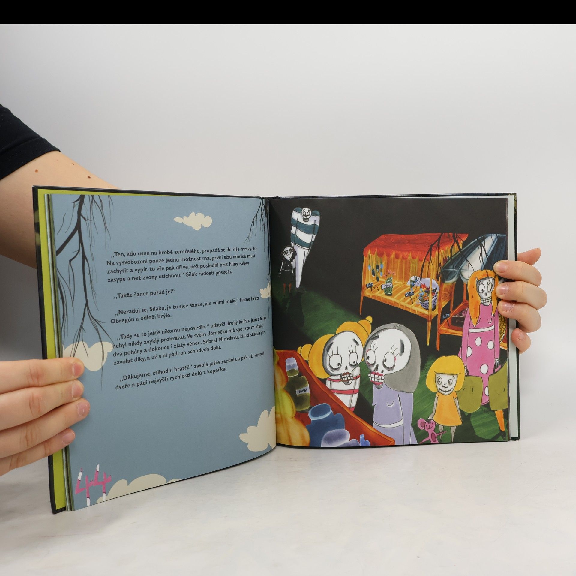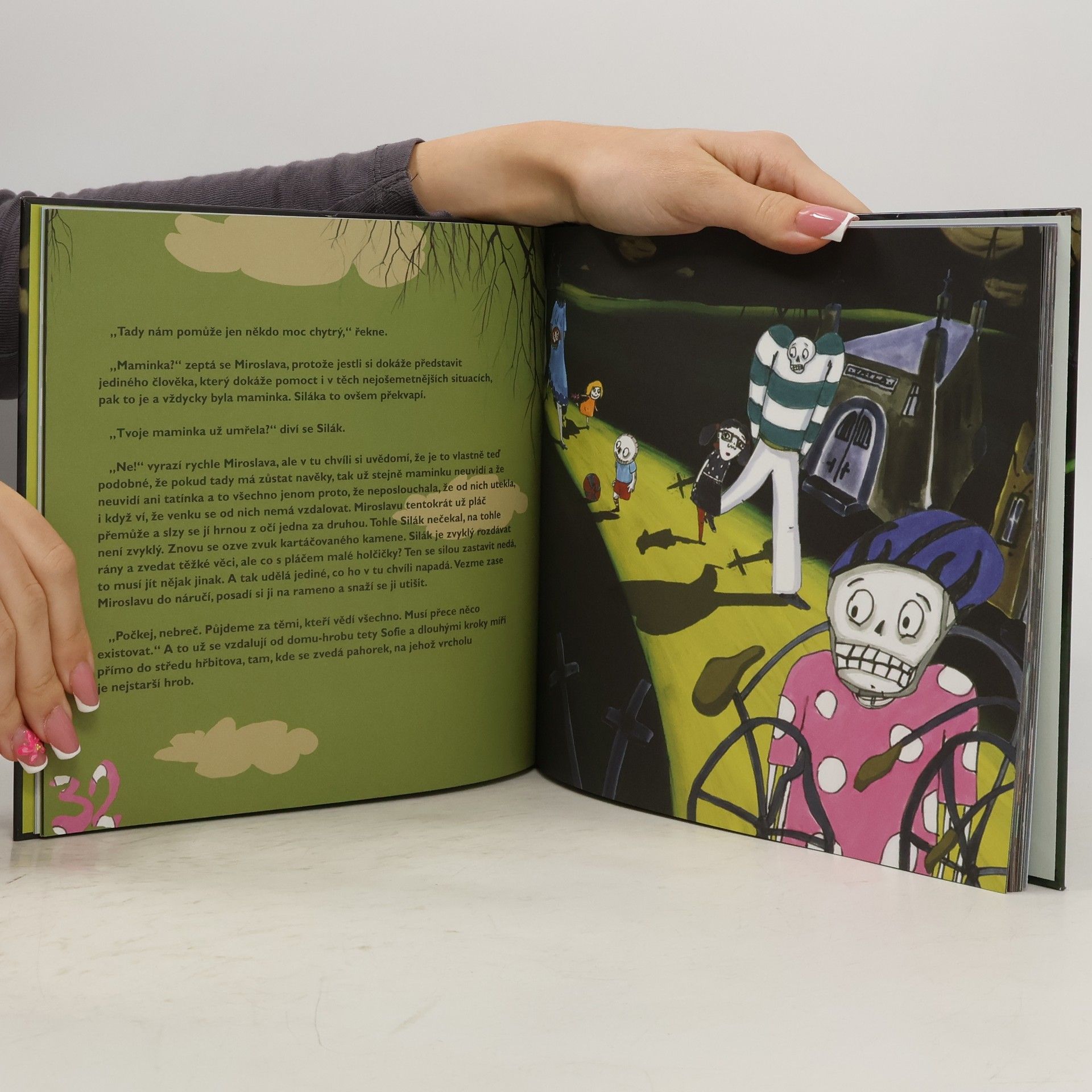 Malá Miroslava usnula na hrobě. Taková hrůza! Bude sloužit zlé Doně Josefíně a její kočce? Zůstane navěky uvězněná v podzemí? Musí včas získat slzu zemřelého, aby se mohla dostat zpět. Ale úplně sama! Není tu ani maminka ani tatínek... Ale i tady v říši mrtvých se najde pár správných chlapíků, co mají pro strach uděláno. Držme jim palce, ať to společně zvládnou a Miroslava se může vrátit domů.