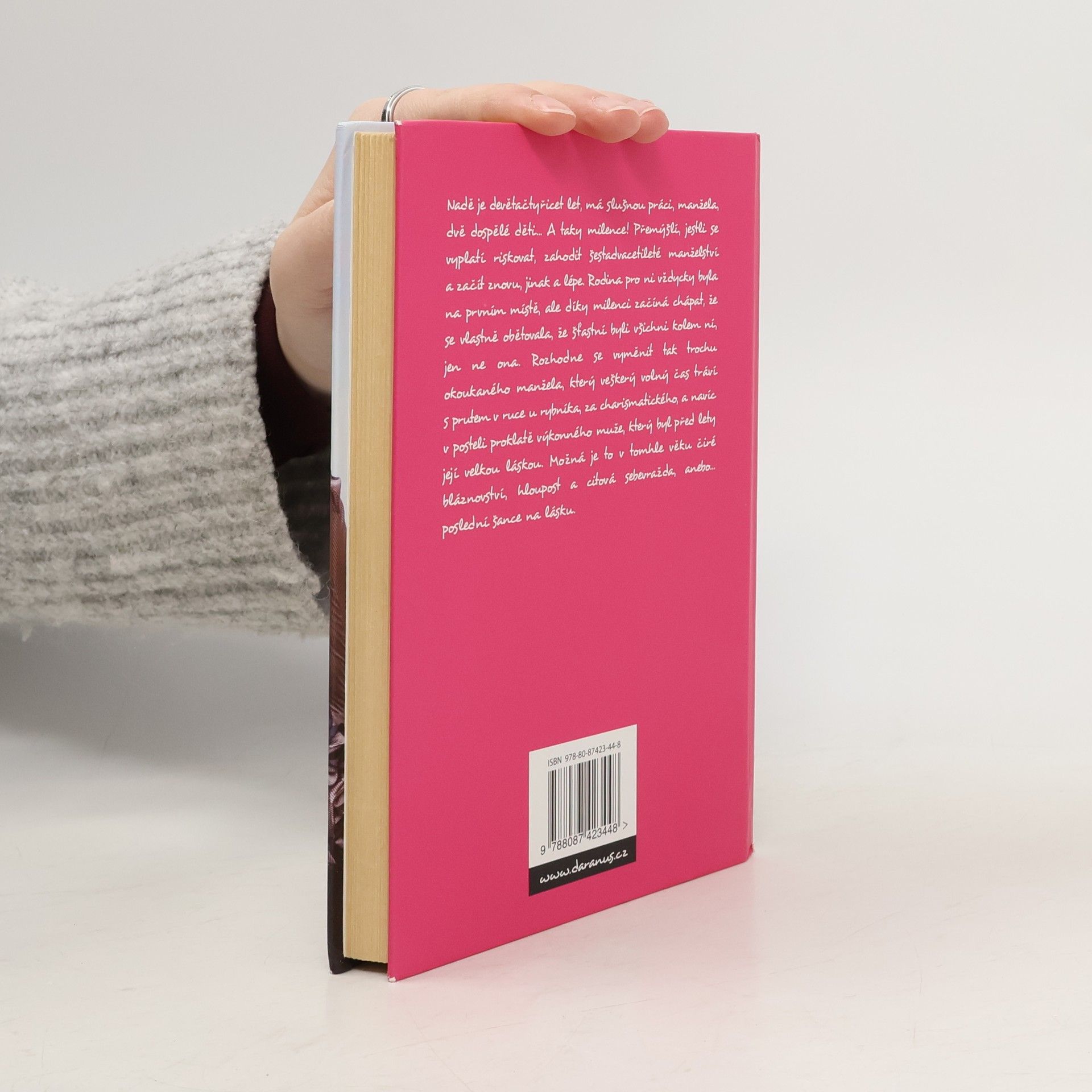 Kniha vypráví příběh ženy, v níž nejedna čtenářka pozná samu sebe. Vždyť kdo by odolal pokušení vymanit se z ubíjejícího manželského stereotypu, když se v jeho životě objeví nová známost? Říká se, že na to, aby byl člověk šťastný, nikdy není pozdě. Ale na druhé straně taky občas platí zlomyslná poučka, že „každá změna je k horšímu“. Volba není jednoduchá. Ostatně jako vždycky, když jde o lásku.