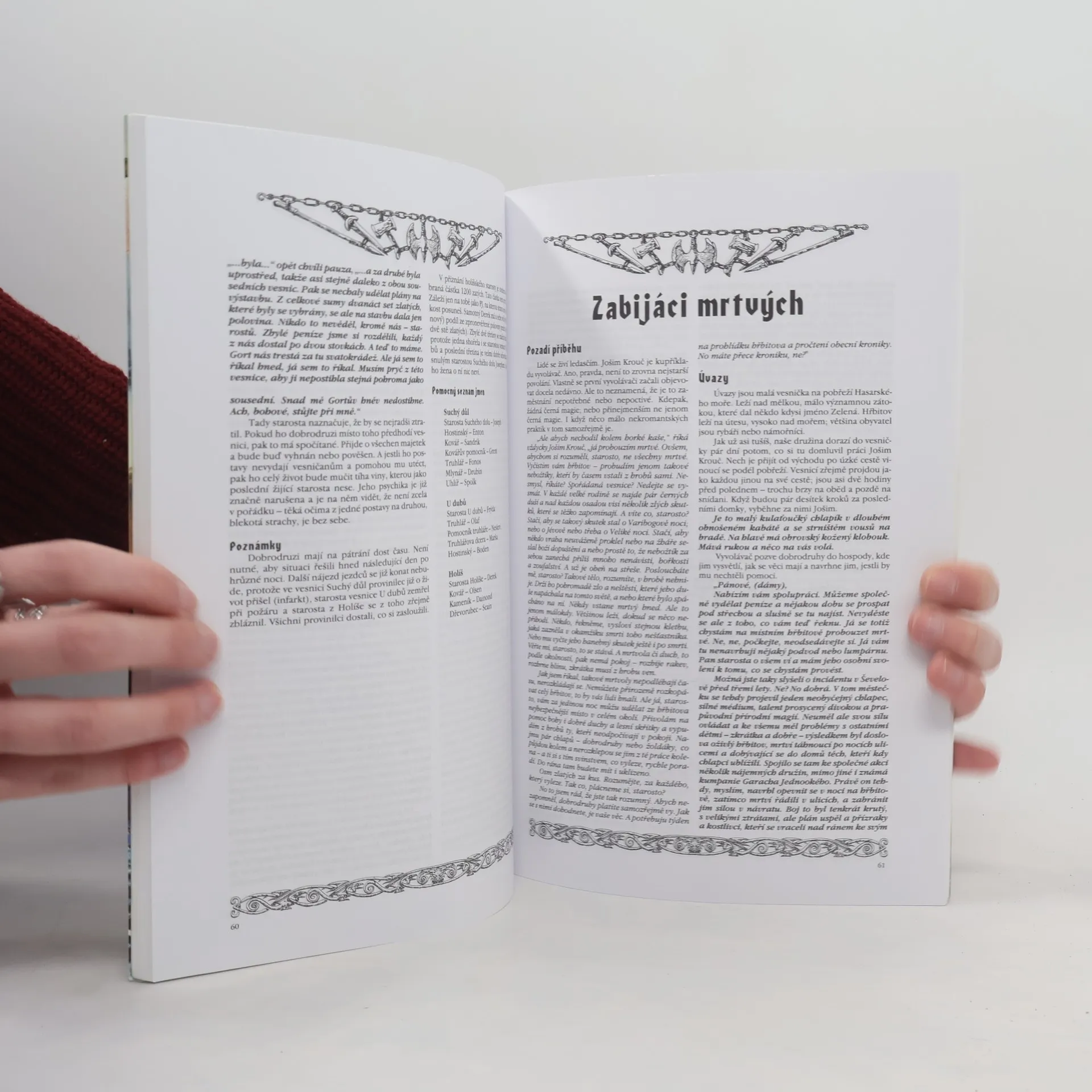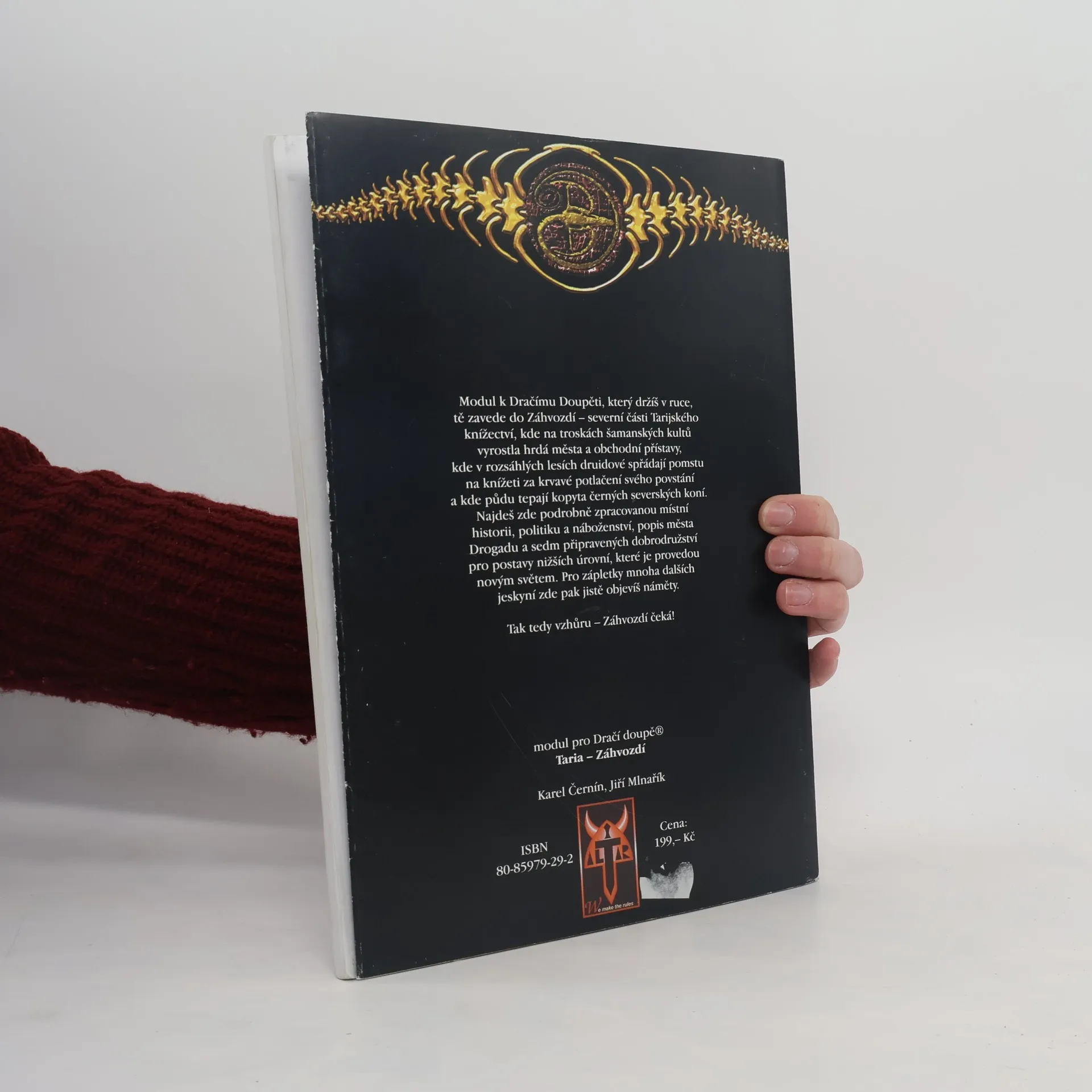 Modul pro hru na hrdiny Dračí doupě tě zavede do Záhvozdí – severní části Tarijského knížectví, kde na troskách šamanských kultů vyrostla hrdá města o obchodní přístavy, kde v rozsáhlých lesích druidové spřádají pomstu na knížeti za krvavé potlačení svého povstání a kde půdu tepají kopyta černých severských koní. Najdeš zde podrobně propracovanou místní historii, politiku a náboženství, popis města Drogadu a sedm připravených dobrodružství pro postavy nižších úrovní, které je provedou novým světem. Pro zápletky mnoha dalších jeskyní zde pak jistě objevíš náměty. (z textu na zadní straně obálky)