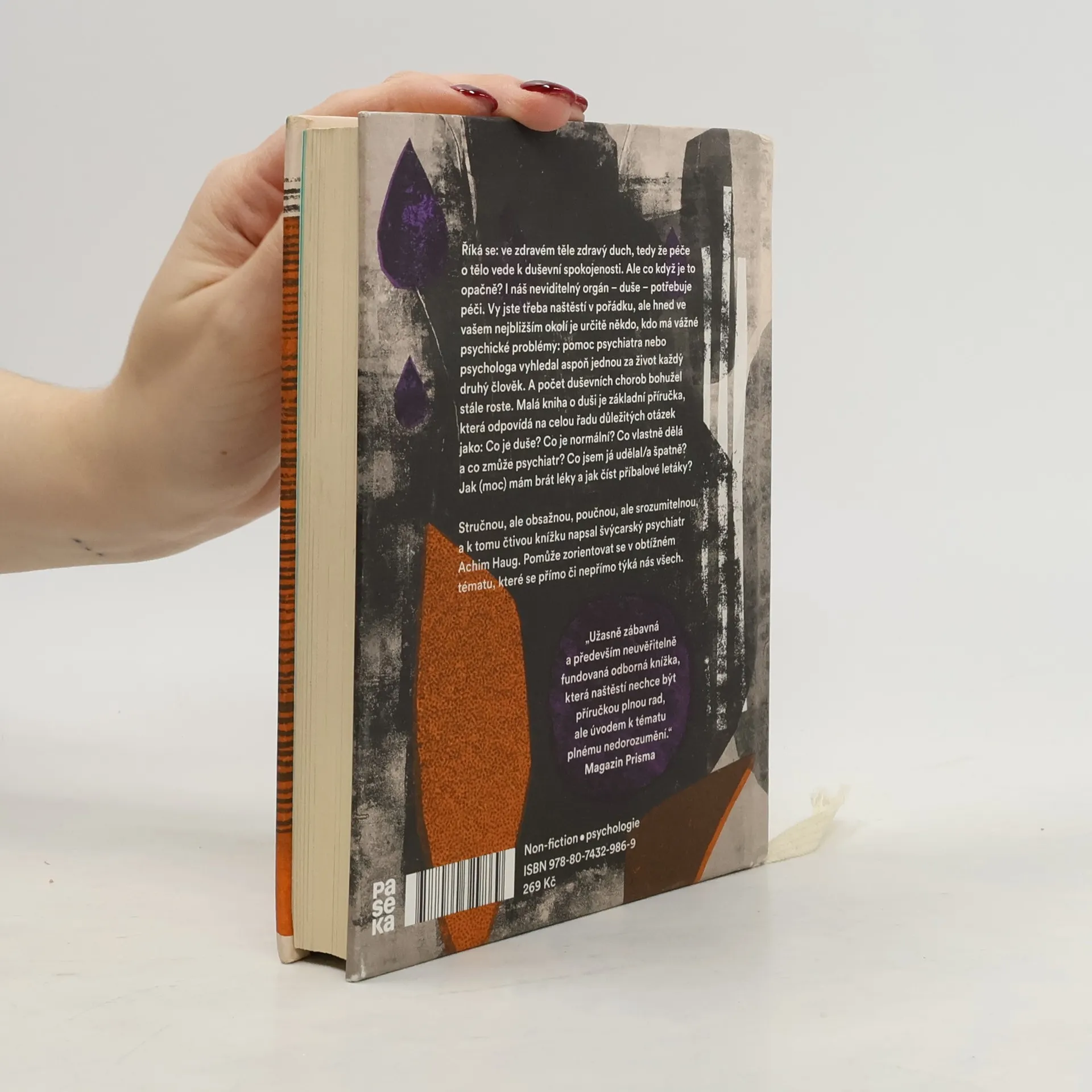 Říká se: ve zdravém těle zdravý duch, tedy že péče o tělo vede k duševní spokojenosti. Ale co když je to opačně? I náš neviditelný orgán - duše - potřebuje péči. Vy jste třeba naštěstí v pořádku, ale hned ve vašem nejbližším okolí je určitě někdo, kdo má vážné psychické problémy: pomoc psychiatra nebo psychologa vyhledal aspoň jednou za život každý druhý člověk. A počet duševních chorob bohužel stále roste. Malá kniha o duši je základní příručka, která odpovídá na celou řadu důležitých otázek jako: Co je duše? Co je normální? Co vlastně dělá a co zmůže psychiatr? Co jsem já udělal/a špatně? Jak (moc) mám brát léky a jak číst příbalové letáky? Stručnou, ale obsažnou, poučnou, ale srozumitelnou, a k tomu čtivou knížku napsal švýcarský psychiatr Achim Haug. Pomůže zorientovat se v obtížném tématu, které se přímo či nepřímo týká nás všech.