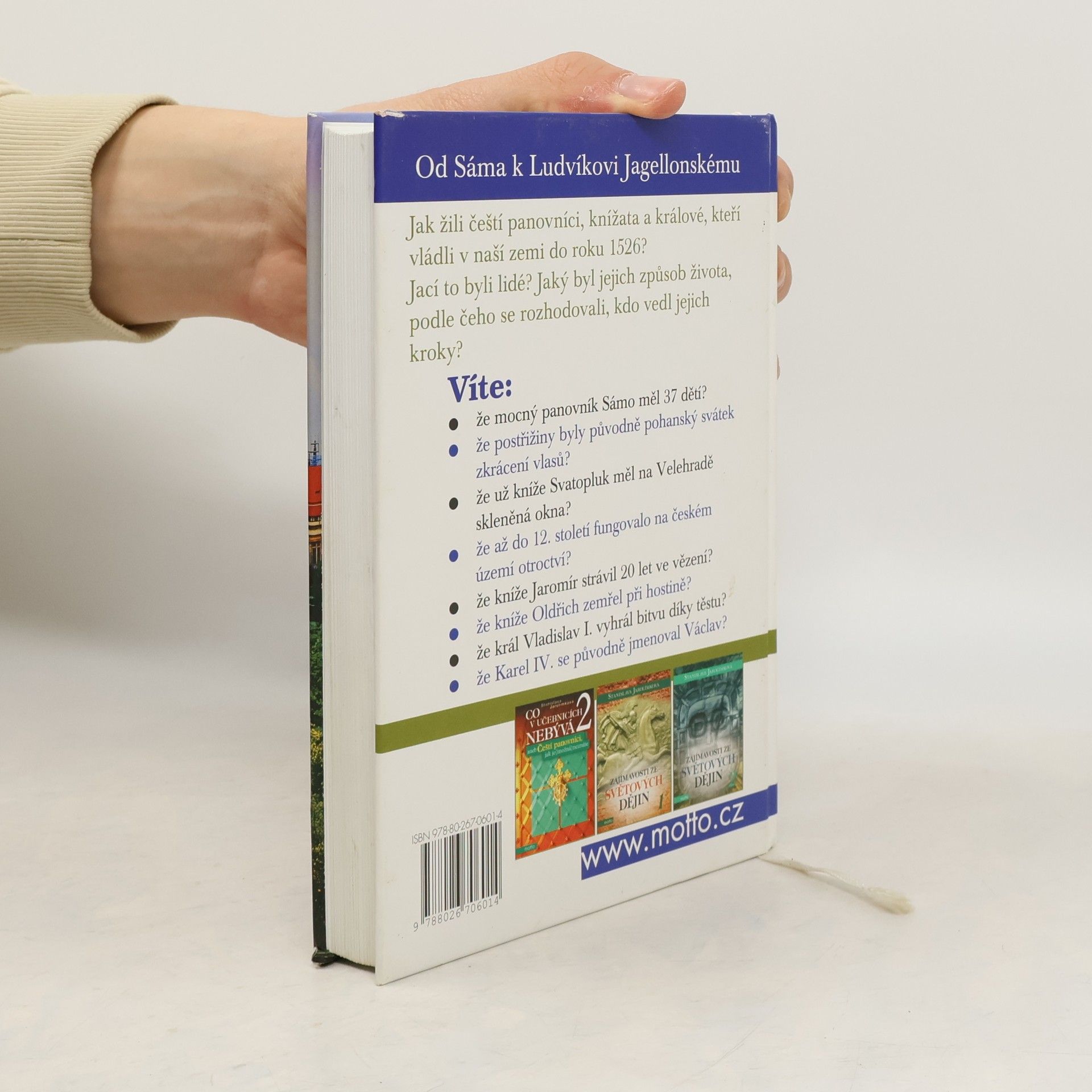 Jak žili čeští panovníci, knížata a králové, kteří vládli v naší zemi do roku 1526? Jací to byli lidé? Jaký byl jejich způsob života, podle čeho se rozhodovali, kdo vedl jejich kroky? Víte, že mocný panovník Sámo měl 37 dětí? Že postřižiny byly původně pohanský svátek zkrácení vlasů? Že už kníže Svatopluk měl na Velehradě skleněná okna? Že až do 12. století fungovalo na českém území otroctví? Že kníže Jaromír strávil 20 let ve vězení? Že kníže Oldřich zemřel při hostině? Že král Vladislav I. vyhrál bitvu díky těstu? Že Karel IV. se původně jmenoval Václav?